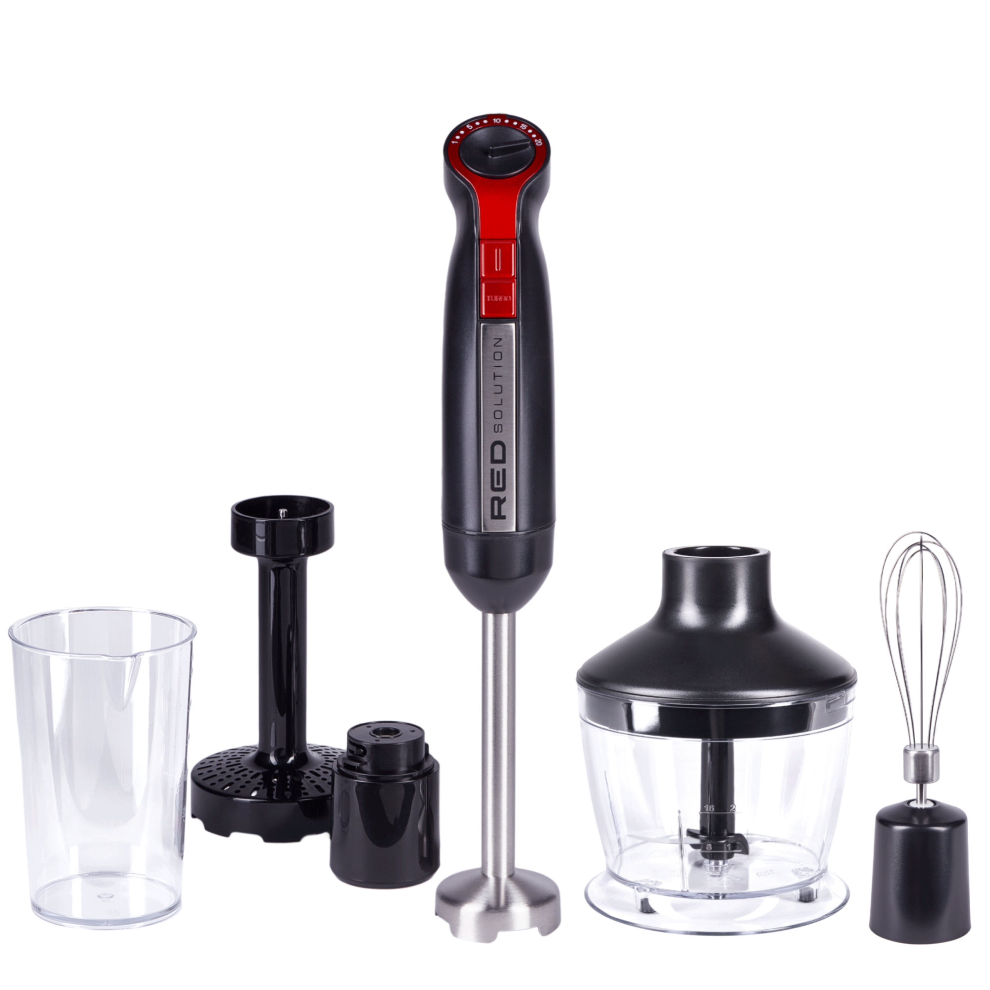 Комплектация блок электродвигателя, чаша измельчителя с крышкой, мерный стакан, S-образный нож измельчителя, насадка-блендер, насадка-венчик, переходник для насадки венчика, ключ, насадка для приготовления пюре, переходник для насадки для приготовления пюре,, сервисная книжка, руководство по эксплуатации