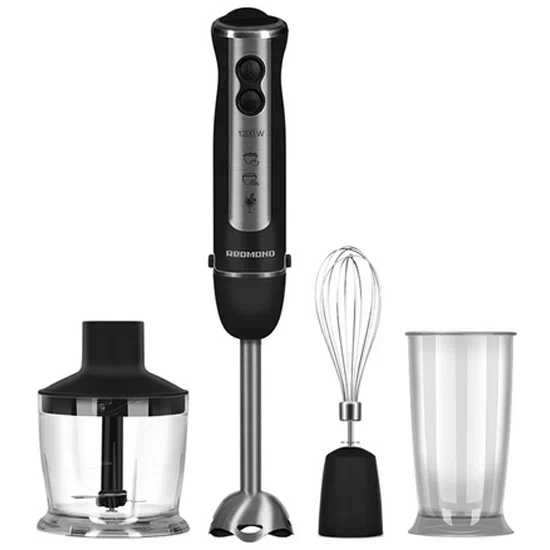 Комплектация блок электродвигателя; чаша измельчителя с крышкой; S-образный нож измельчителя; насадка-блендер; насадка-венчик; переходник насадка венчика; стакан для смешивания; сервисная книжка; руководство по эксплуатации
