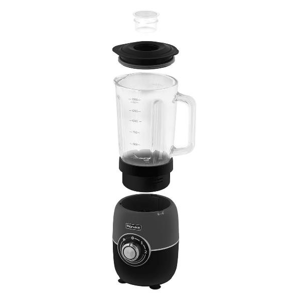 Стационарный блендер Rondell RDE-1252 поддерживает две скорости, для выбора интенсивности предусмотрен механический переключатель. Режим «Импульсный» позволяет быстро взбить ингредиенты до однородной массы. Модель оборудована стеклянной емкостью объемом 1,5 л. Крышка оснащена отверстием, поэтому можно добавлять продукты во время работы устройства. Резервуар имеет градуированную шкалу.