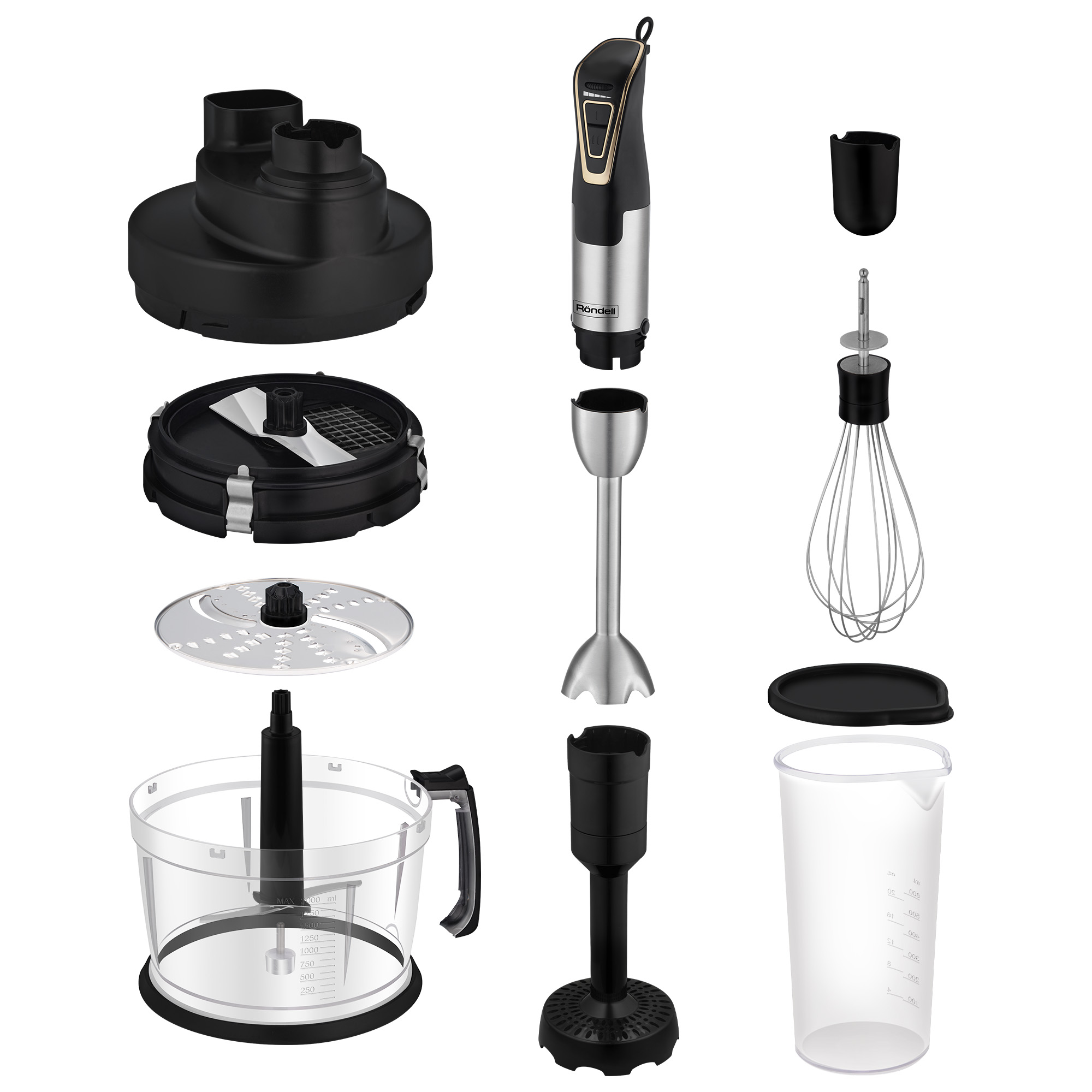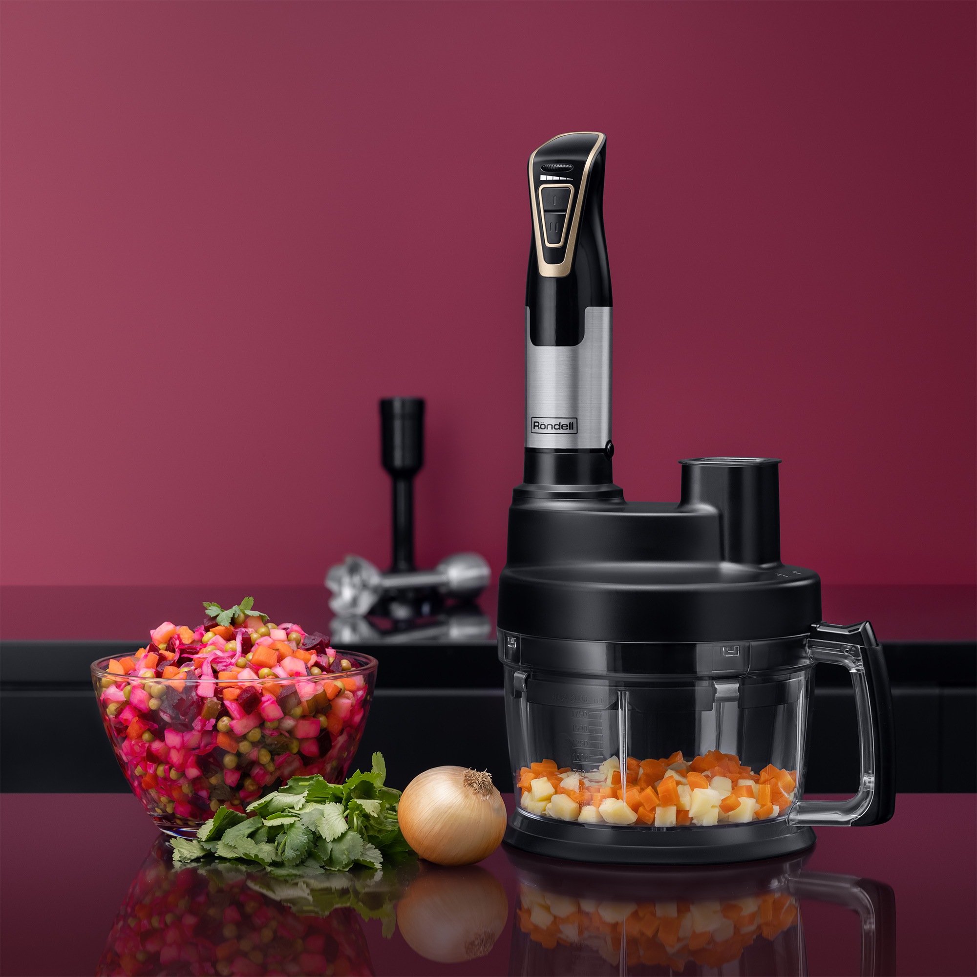 Многофункциональный блендерный набор оборудован погружной частью и лезвиями из нержавеющей стали, обеспечивающими эффективное и качественное измельчение любых ингредиентов, необходимых для вашего идеального блюда.