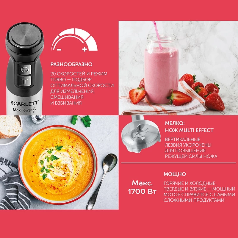 Блендер Scarlett SC-HB42F86 облегчит процесс приготовления множества блюд.