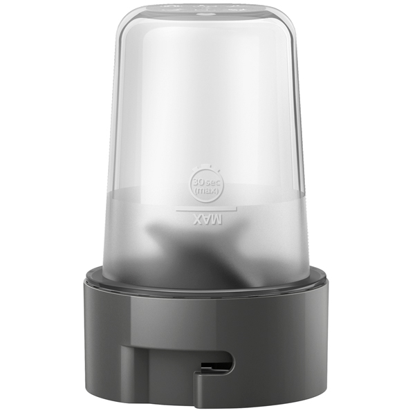 У прибора очень простое управление: две кнопки, отвечающие за выбор первой или второй скорости. Благодаря мощности 350 Вт и острым крестообразным ножам даже твёрдые продукты за считаные секунды перерабатываются в однородную смесь без комочков. Вы сможете и измельчать специи, например, перец горошком или зёрна кунжута. Специально для этого прилагается насадка-мельничка объёмом 150 мл.