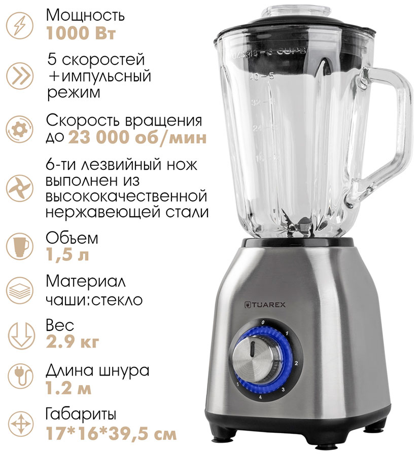 Идеален для колки льда, приготовления смузи, супов пюре и не только