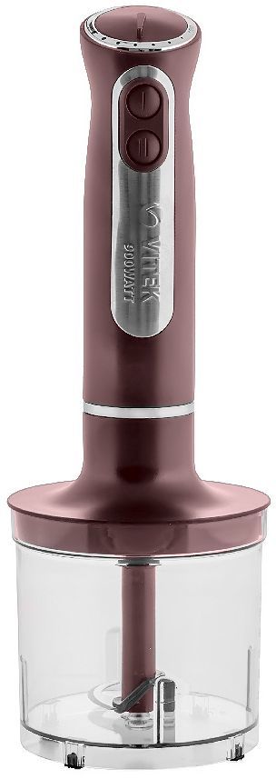 тип: погружной, максимальная мощность: 900 Вт, материал погружной части: металл, насадки: венчик для взбивания, измельчитель, в комплекте: мерный стакан, дополнительные функции: плавная регулировка скорости, емкость измельчителя: 0.50 л, количество скоростей: 2