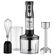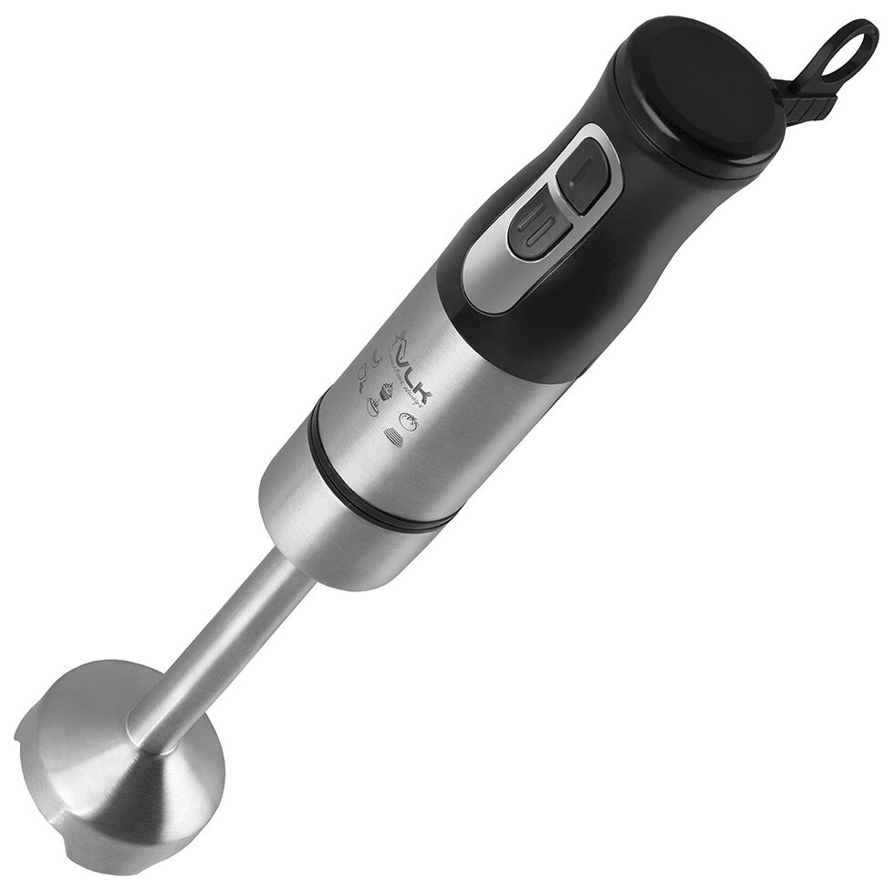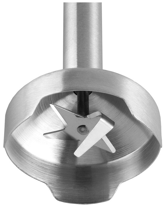 нержавеющая сталь; низкий уровень шума и вибрации; специальная форма погружной насадки предотвращает попадание брызг на рабочую поверхность; прорезиненная ручка; насадки можно мыть в посудомоечной машине