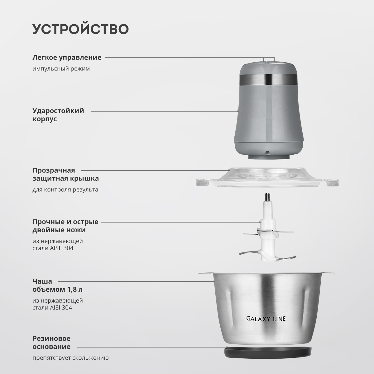 Чаша объемом 1,8 л из нержавеющей стали AISI 304
