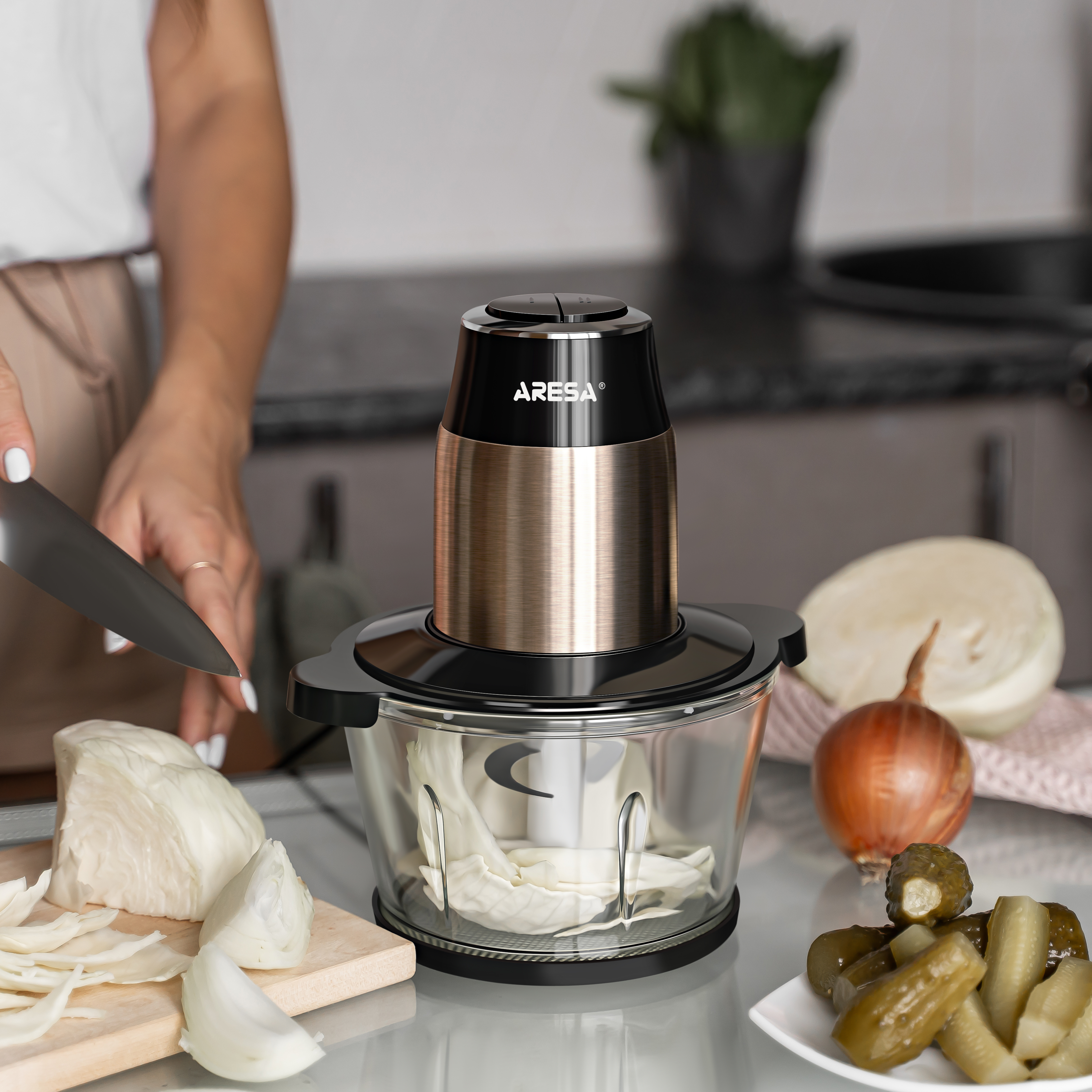Нож с двойными лезвиями для более лучшего и быстрого измельчения.
