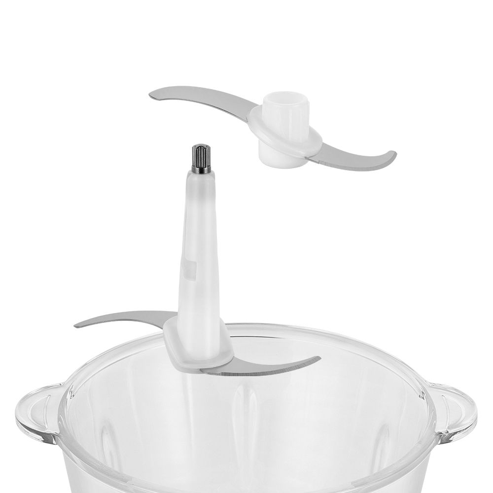Двойной нож измельчает продукты практически по всей высоте чаши от крупной нарезки до состояния пюре.