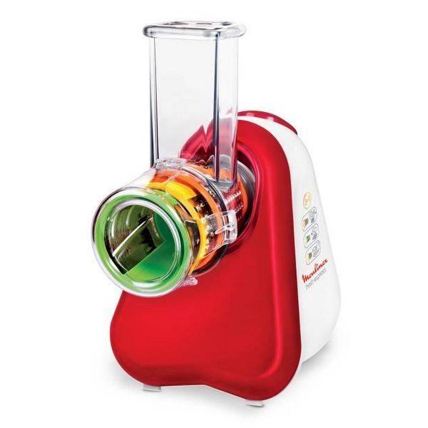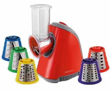 5 насадок для нарезки и шинковки: для измельчения твердых продуктов, для мелкой и крупной шинковки, для нарезки ломтиками разной толщины.