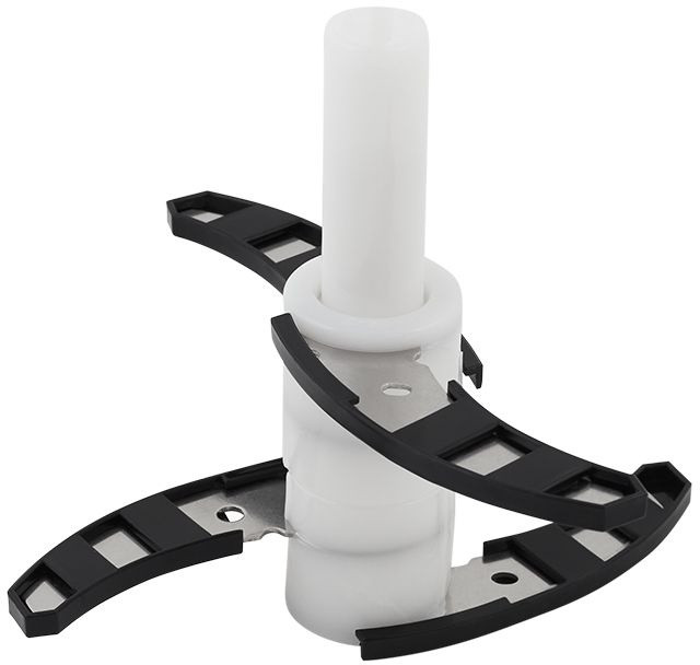 Комплектация: моторный блок, пластиковая крышка чаши с силиконовой прокладкой, блок ножей, защитный кожух ножа, стеклянная чаша, резиновая подкладка под чашу, лопатка