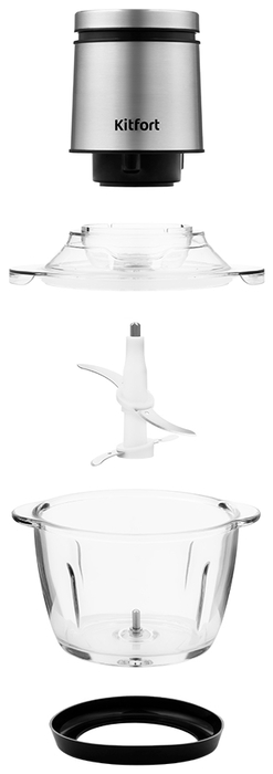 1. Измельчитель: • Моторный блок — 1 шт. • Крышка чаши с силиконовой прокладкой — 1 шт. • Блок ножей — 1 шт. • Защитный кожух — 4 шт. • Чаша — 1 шт. • Силиконовая подкладка под чашу — 1 шт.