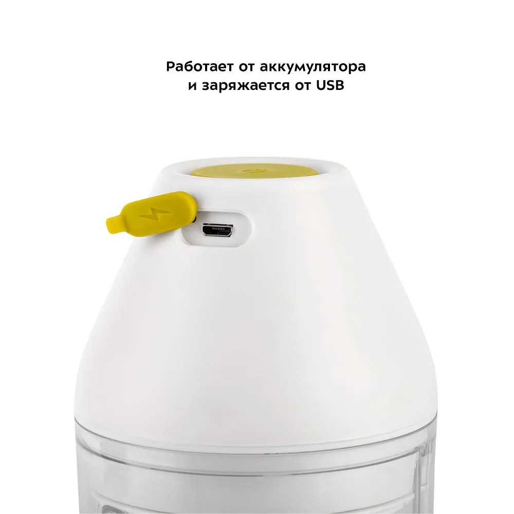 Работает от аккумулятора и заряжается от USB. Он незаменимый помощник для приготовления домашнего детского питания, супов-пюре и множества других блюд. Перед смешиванием все ингредиенты необходимо порезать на кусочки.