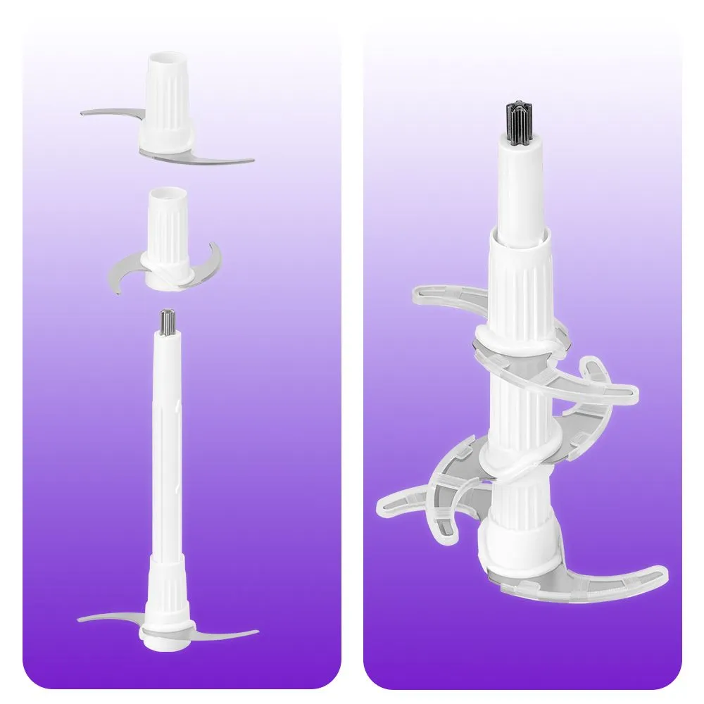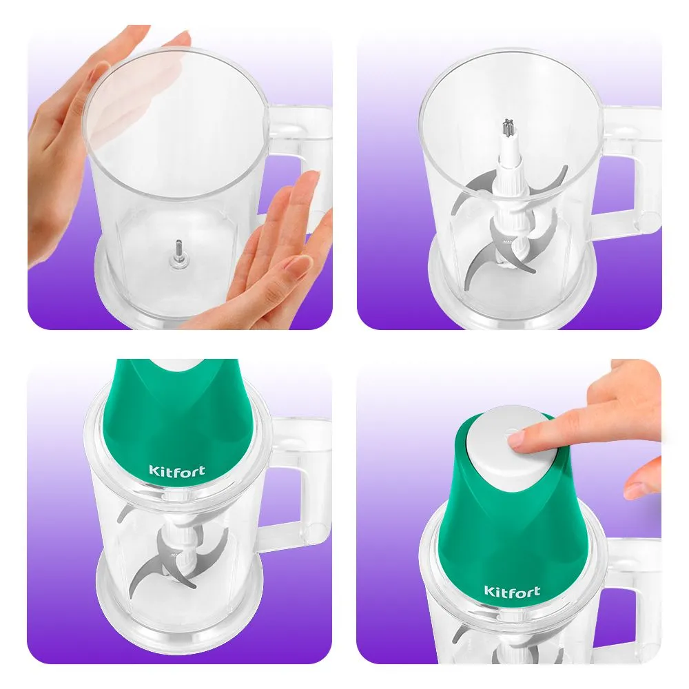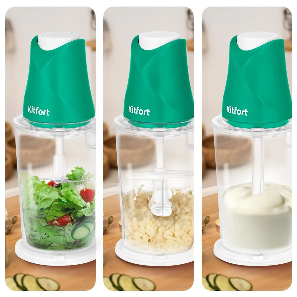 Измельчитель «3 в 1» КТ-3514 – это не просто устройство для быстрого измельчения разных продуктов. В комплект входят насадки для взбивания и измельчения чеснока, которые помогут легко готовить воздушные кремы и быстро измельчать ингредиенты для блюд.
