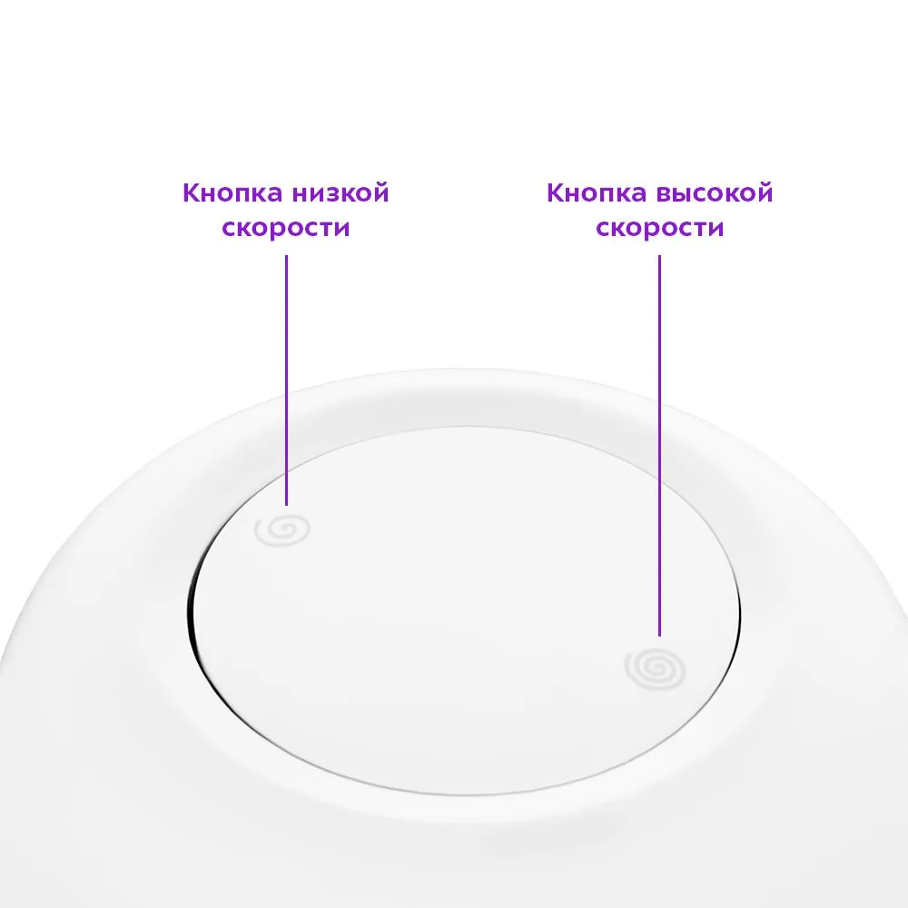 У измельчителя две скорости работы. Низкая скорость подходит для измельчения мягких продуктов, высокая скорость — для более твёрдых и плотных. Степень измельчения продуктов регулируется длительностью нажатия на кнопку выбранной скорости.