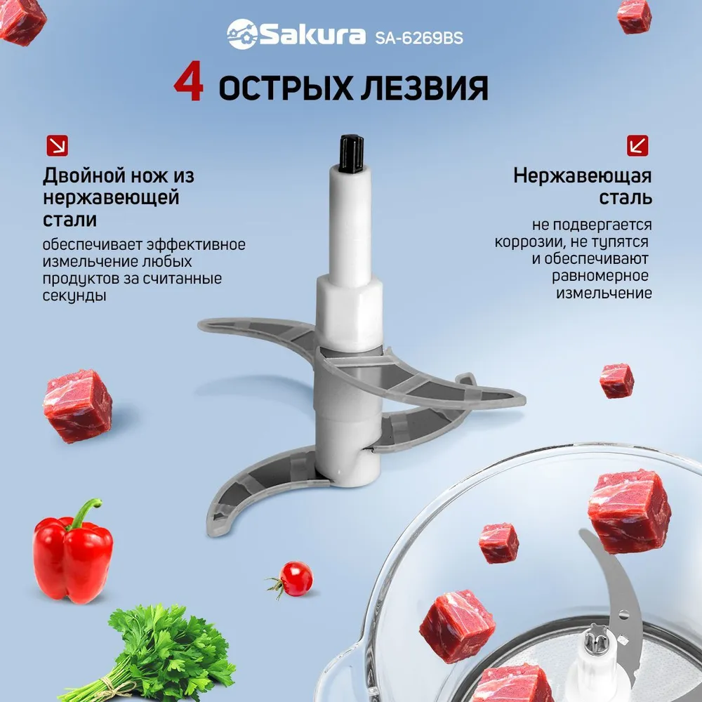 Вид насадки: Нож-измельчитель, Чаша-измельчитель, Насадка-блендер, Для смешивания, Для фарша, Мясорубка, Нож для колки льда