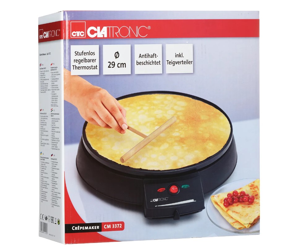 Вы когда-нибудь пекли блины? И вам не понаслышке знакома фраза - "Первый блин комом". Однако, если купить блинницу Clatronic CM 3372, такой вариант развития событий просто исключен.