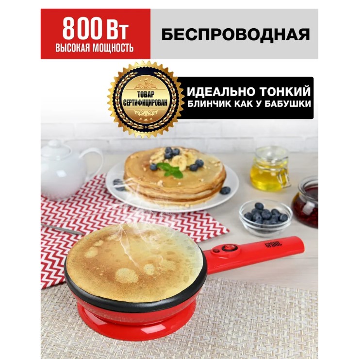 Электроблинница GFGRIL GFC-B400 предназначена для простого и быстрого выпекания красивых и вкусных блинов. Наличие беспроводной системы делает процесс приготовления более удобным и безопасным.