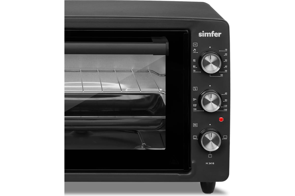 При первом запуске рекомендуем протопить печь 15 минут при 200°C с противнем, наполненным водой (300-400 г.), для прогорания заводской смазки.