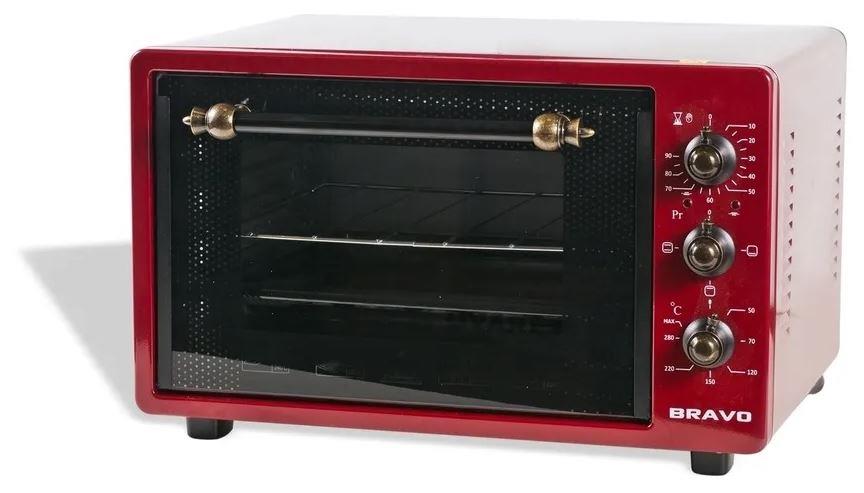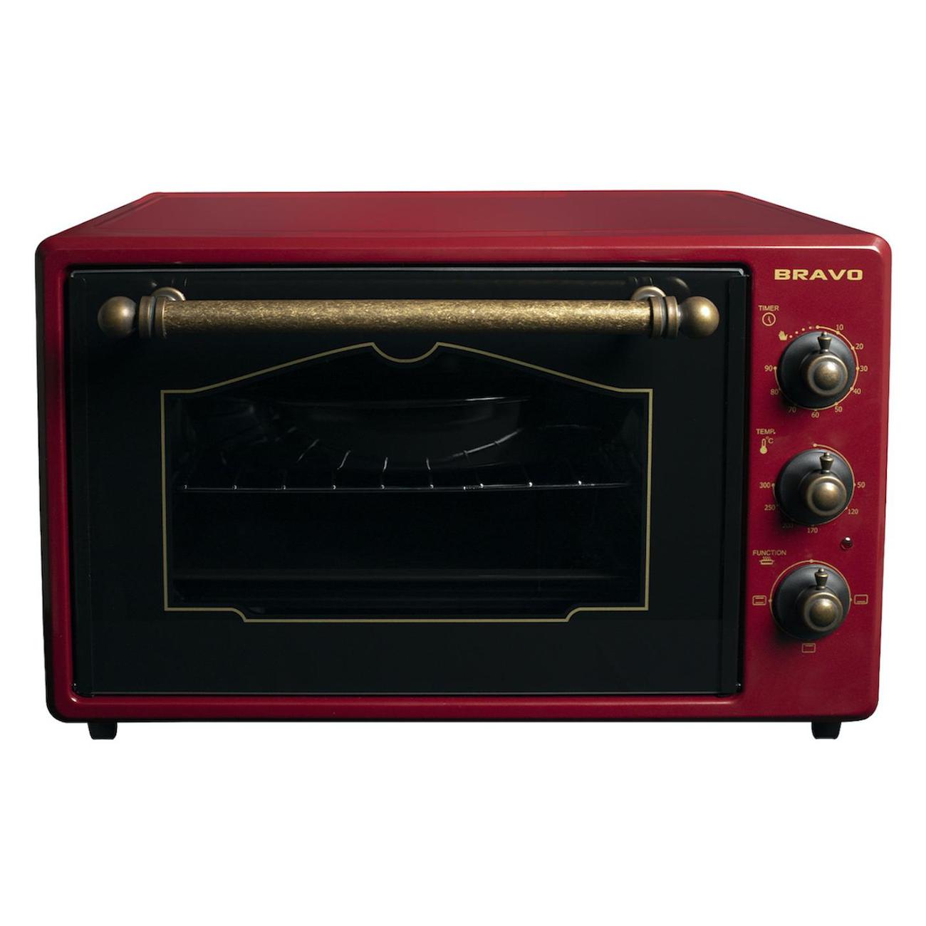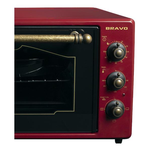 * Производитель: Bravo * Цвет: красный * Тип прибора: мини-печь * Внутренний объем: 38л * Максимальная мощность: 700Вт * Количество конфорок: без конфорок * Максимальная температура: 280°С * Количество режимов работы: 3 * Конвекция: Нет * Гриль: Нет * Вертел: Нет * Внутреннее покрытие камеры: эмаль * Открытие двери: откидное * Управление: механическое * Дисплей: Нет * Таймер: Да * Максимальное время таймера: 90мин * Особенности: автоотключение защита от перегрева звуковой сигнал индикатор работы ручка с защитой от нагревания термоизолированый корпус * Комплектация: круглый противень прорезиненные ножки противень решетка * Вес: 8.2кг