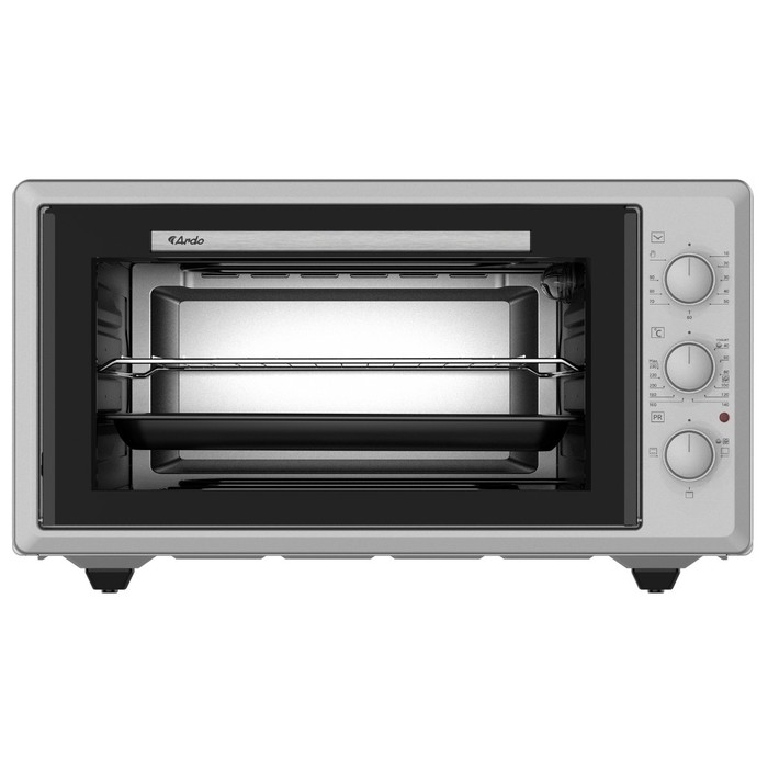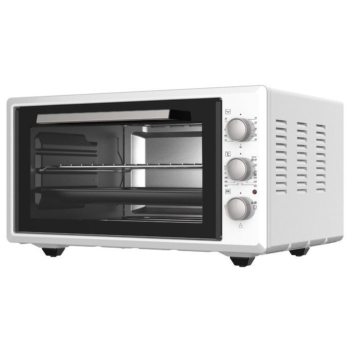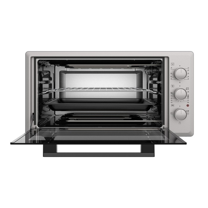 Комплектация мини печь; 1 стандартный эмалированный квадратный противень; 1 решетка; 1 эмалированный круглый противень