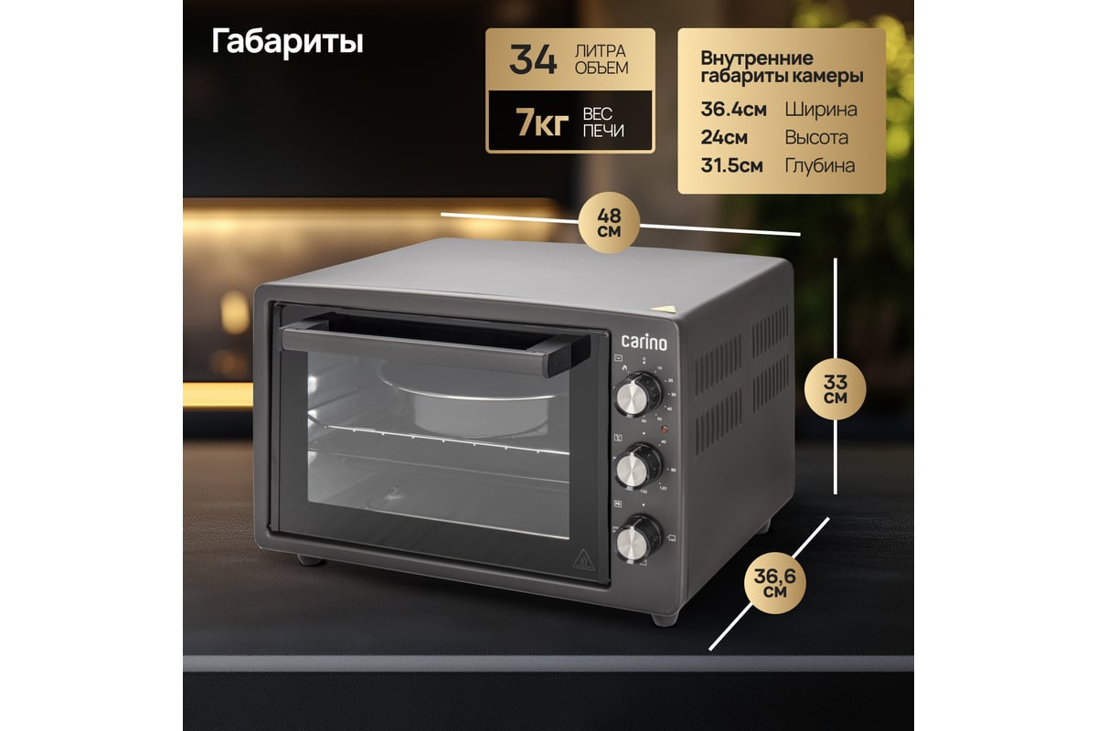 Мини-печь M3426 от бренда CARINO – идеальное решение для тех, кто ценит компактность и функциональность в кухне. Эта модель обладает внутренним покрытием из гальванизированной стали, что обеспечивает долговечность и легкость в уходе. С тремя режимами работы и максимальной температурой до 230 °С, она позволяет готовить разнообразные блюда с легкостью. Откидная дверца обеспечивает удобство доступа к пище, а механическое управление делает процесс приготовления простым и понятным. С вместимостью 34 л и мощностью 1300 Вт, мини-печь M3426 от CARINO станет незаменимым помощником в любой кухне.
