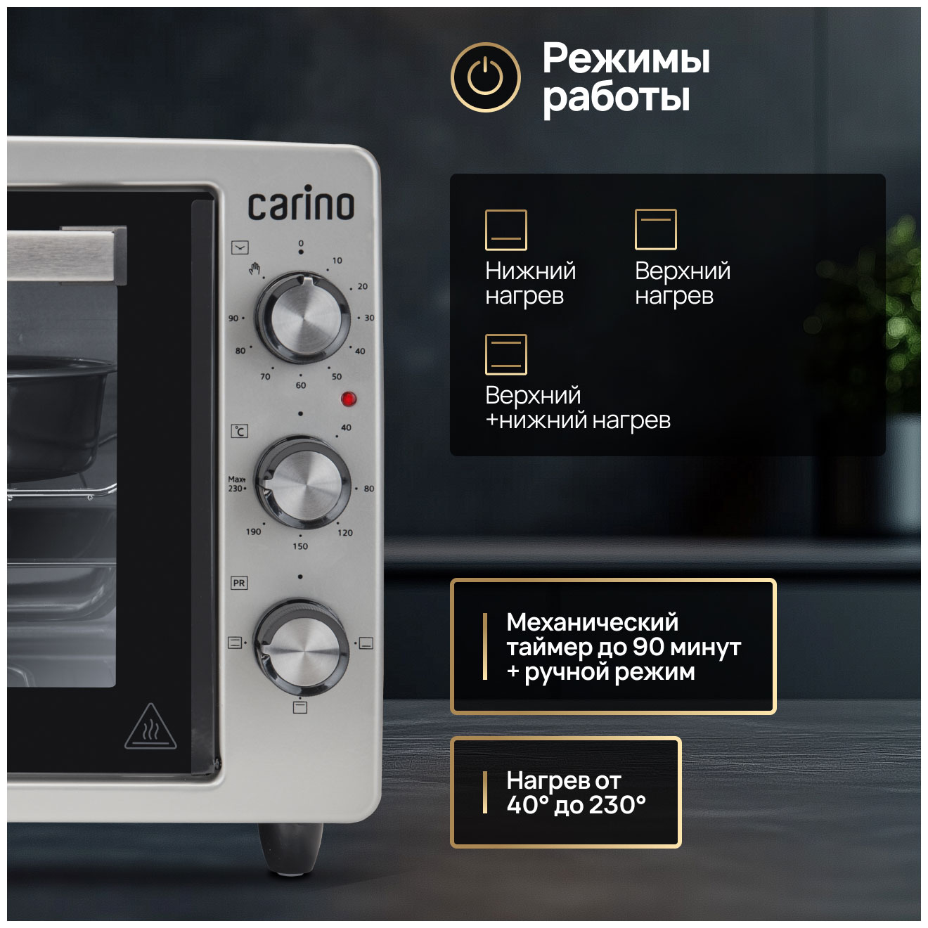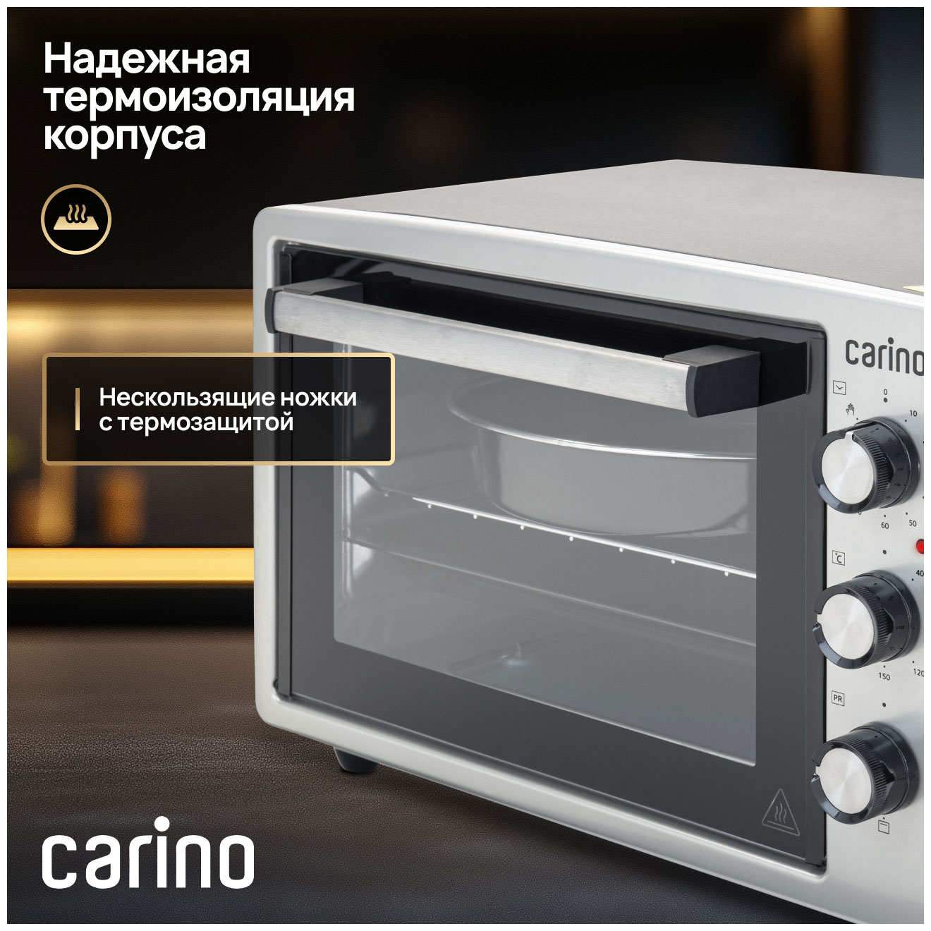 Мини-печь M4216 от бренда CARINO – это компактное и мощное решение для вашей кухни, предлагающее 42 литра вместимости и мощность 1300 Вт. Благодаря технологии конвекции, она обеспечивает равномерное распределение тепла, что позволяет достигать идеального результата при приготовлении блюд. Внутреннее покрытие камеры из термостойкой эмали Easy Clean упрощает очистку после использования. Дополнительные функции включают внутреннее освещение камеры, таймер с автоотключением и 5 режимов работы, что делает эту мини-печь универсальным инструментом для любых кулинарных экспериментов. Откидная дверца и максимальная температура до 230 °С позволяют легко и быстро готовить различные блюда. Управление мини-печью осуществляется механически, что обеспечивает простоту и удобство в использовании.