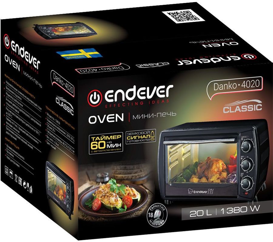 А для того чтобы не отвлекаться каждые пять минут, установите таймер и занимайтесь своими делами. После истечения времени вам будет подан звуковой сигнал. Мини-печь ENDEVER Danko-4020 имеет потребляемую мощность в 1380 Вт. Нагревательные элементы изготовлены из нержавеющей стали, при необходимости их можно легко очисть от жира, пыли и других загрязнений. Мини-печь выполнена в универсальном черном цвете.