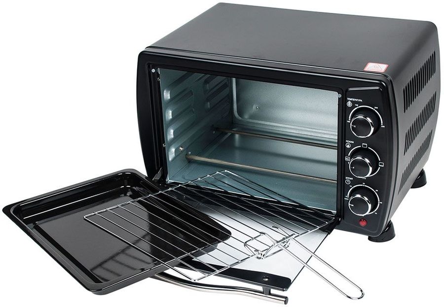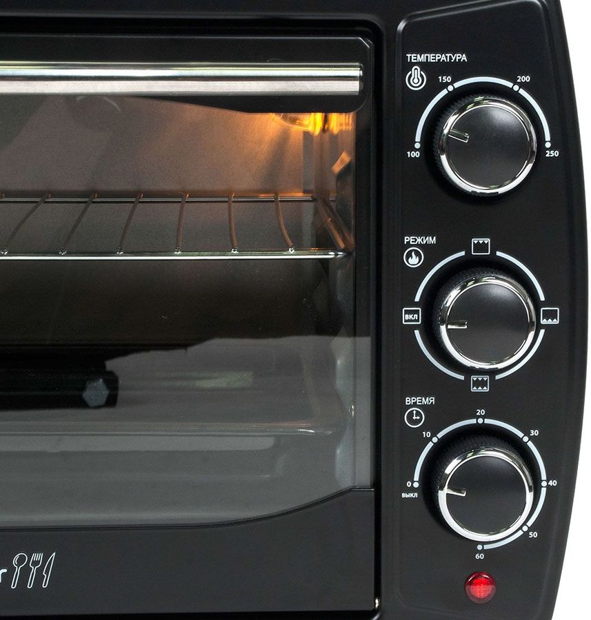 Особенности: Нагревательные элементы из нержавеющей стали. Внутренняя подсветка. Таймер на 1 час с функцией автоотключения и звуковым сигналом. Большая дверца и удобная ручка с декоративной стальной вставкой.