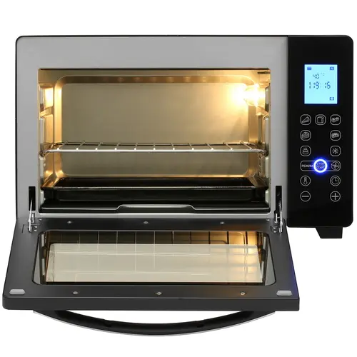 Мини-печь Hyundai MIO-HY096 объемом 28 л поддерживает режим гриля с конвекцией. Он обеспечивает равномерное запекание и формирование хрустящей корочки. Предусмотрена возможность регулировки температурных значений в пределах от 40 до 250 °C. Контролировать течение кулинарного процесса позволяет мощная подсветка.