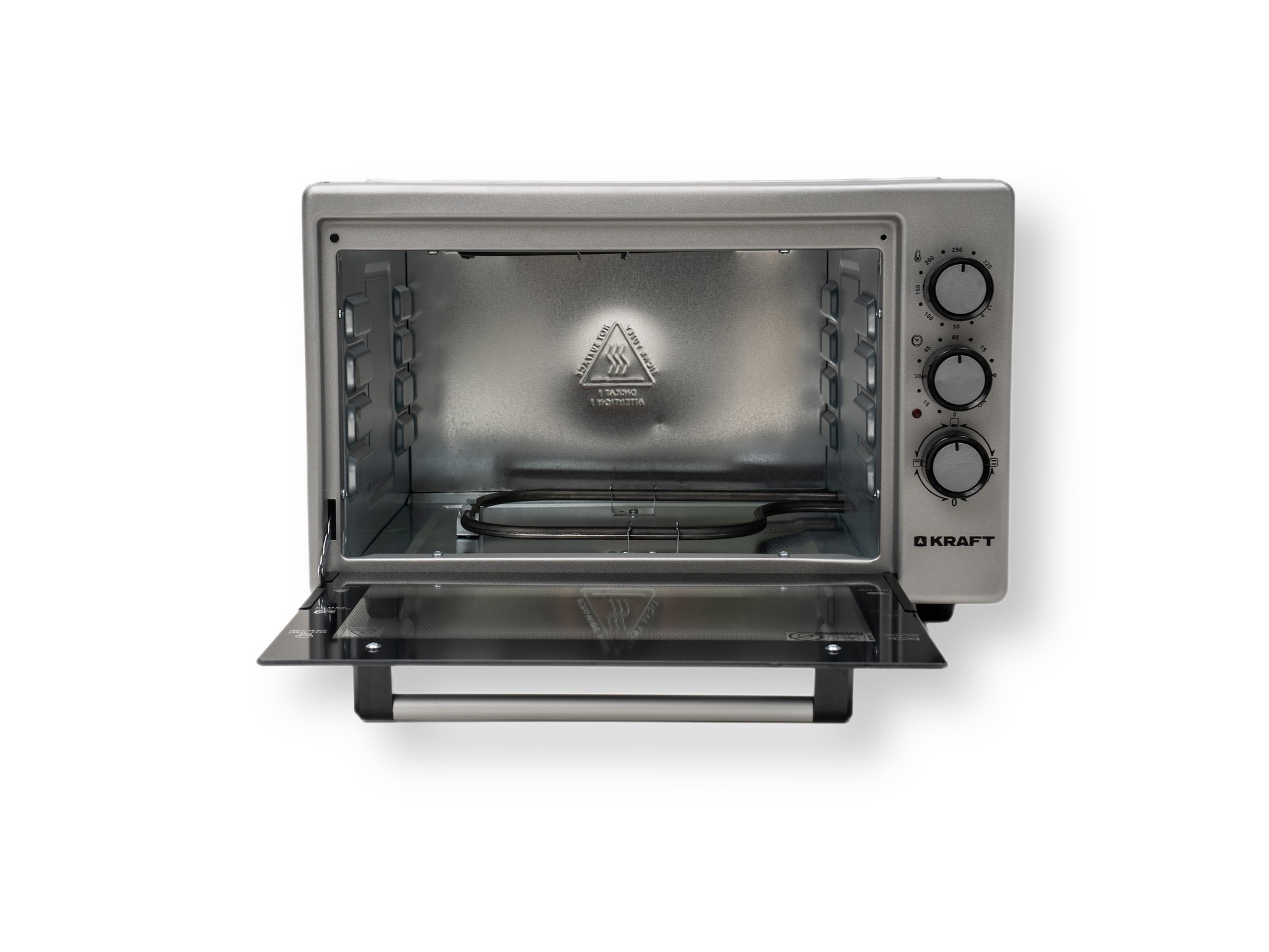 Электрическая духовка Kraft KF-MO3801GR выполнена в сером металлическом корпусе и имеет внутреннюю камеру объемом 38 л, позволяя готовить различные блюда быстро и удобно. В печи предусмотрено 3 стандартных режима нагрева – нижний, верхний и двухсторонний. Температура приготовления блюд регулируется в диапазоне от 50 °C до 320 °C. Также имеется таймер обратного отсчета на 90 минут.