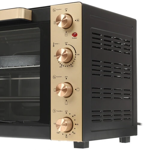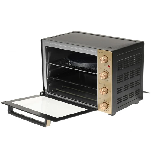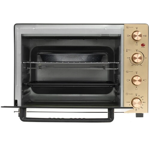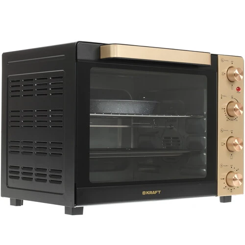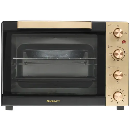 Электропечь Kraft KF-MO 6011 RKGL – эта модель станет незаменимой помощницей на вашей кухне. Ее объем составляет 60 литров, а мощность 2300 Вт. Максимальная температура, которую позволяет настроить эта модель довольно высокая — 250º. Температурный режим регулируется вручную, благодаря чему вы можете выбрать подходящий именно для вас. Таймер прибора предназначен для того, чтобы вы точно знали, когда будет готово блюдо.