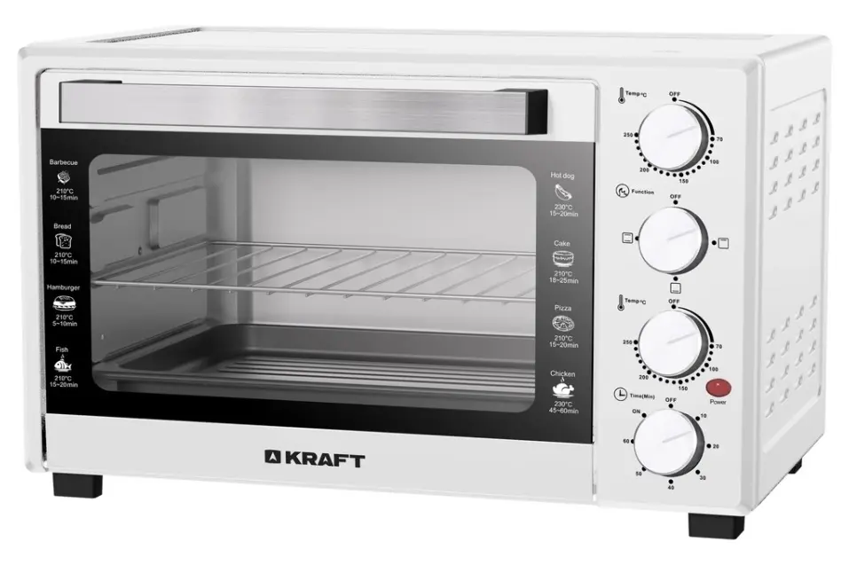 Комплектация: мини-печь, глубокий прямоугольный противень, перчатки и решетка, документация