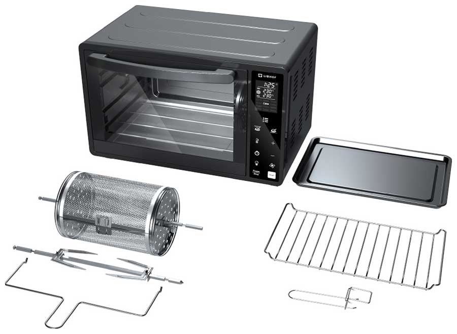 мини-печь, набор для гриля, противень для выпечки, решетка, ручка для подноса, поднос для крошек, вращающаяся корзина руководство пользователя