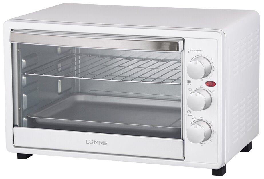 сигнал об окончании приготовления, дверца из закаленного стекла, световой индикатор работы; количество противней в комплекте: 1