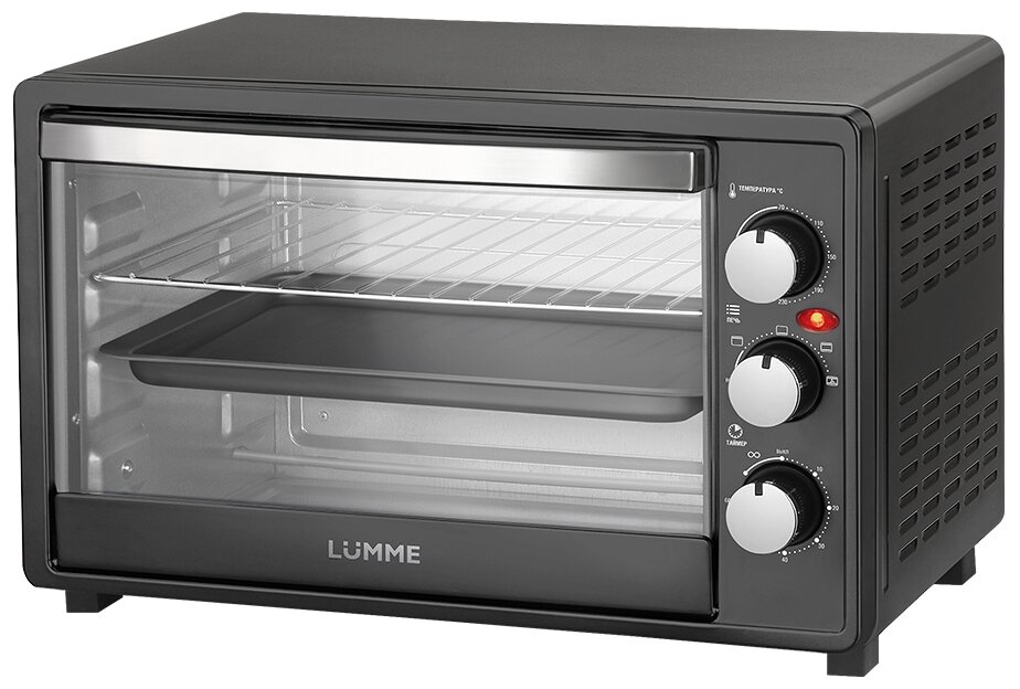 сигнал об окончании приготовления, дверца из закаленного стекла, световой индикатор работы; количество противней в комплекте: 1