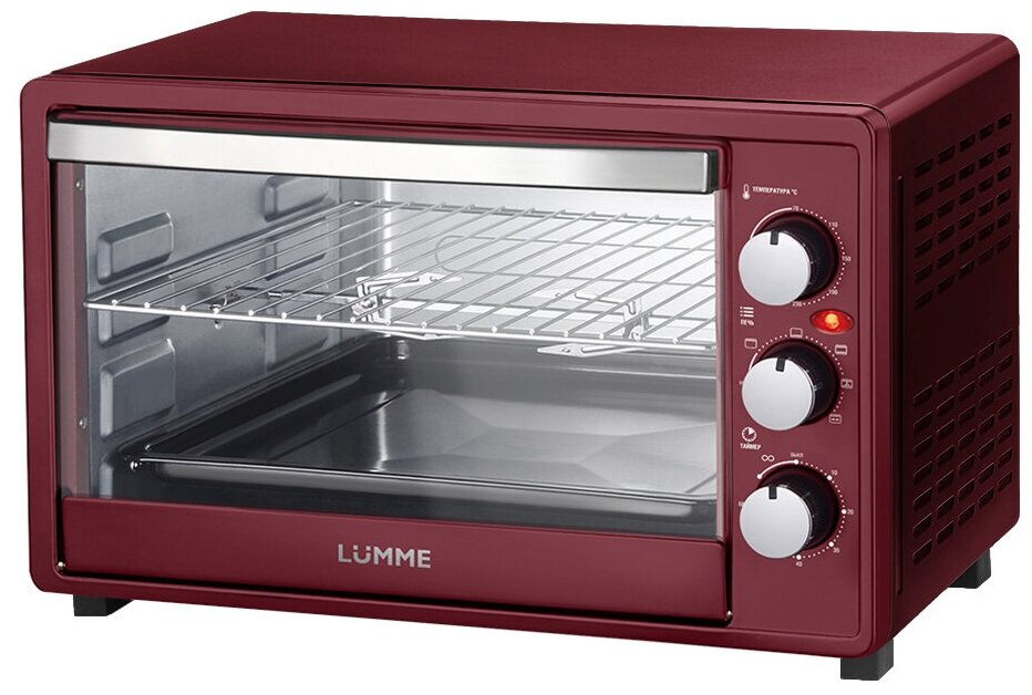 сигнал об окончании приготовления, дверца из закаленного стекла, световой индикатор работы; ручка для вертела в комплекте; количество противней в комплекте: 1