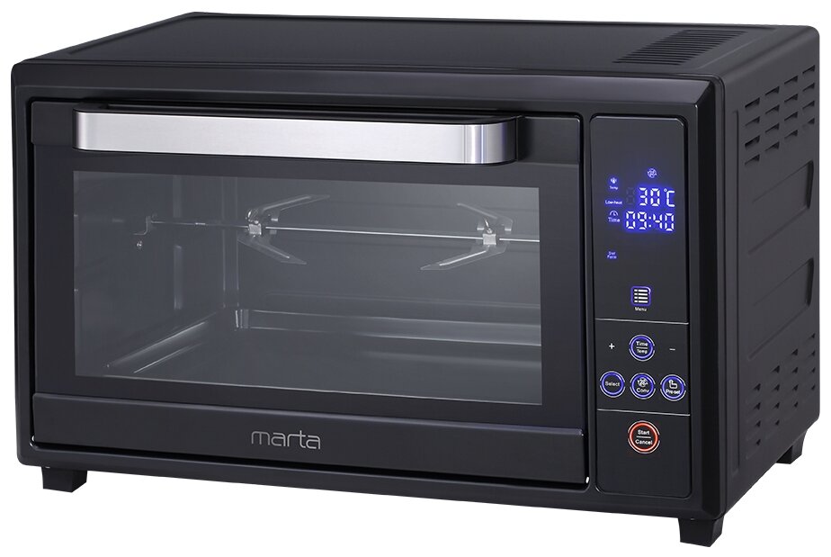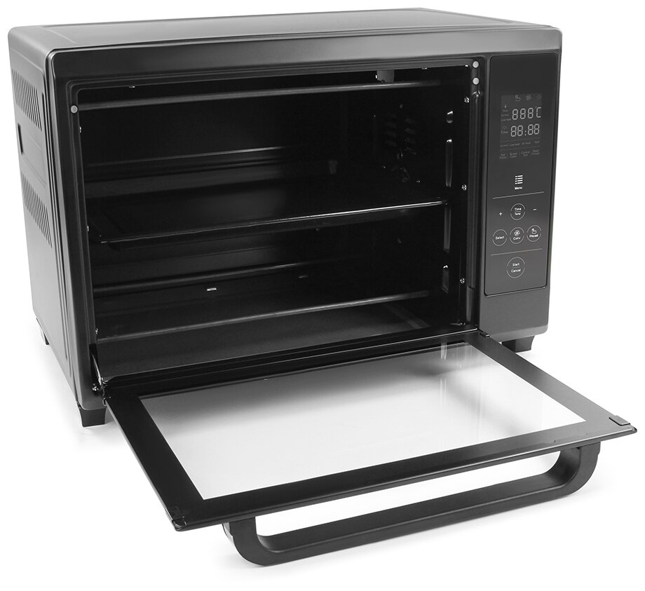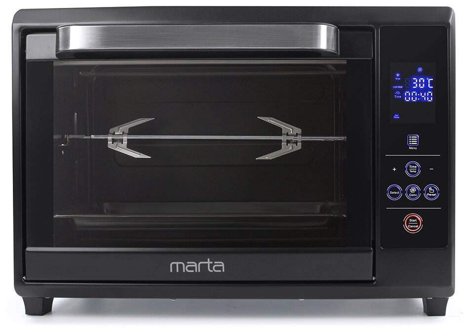отложенный старт до 24 ч, сигнал об окончании приготовления, автоматическое выключение, антипригарное покрытие камеры; шашлычница, держатель для вертела/шашлычницы