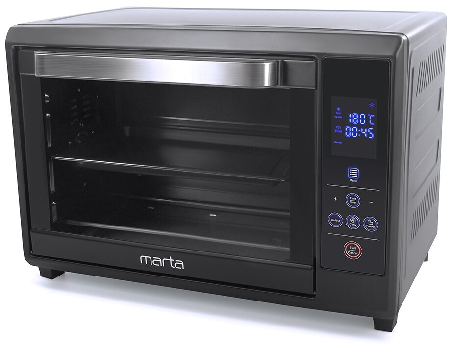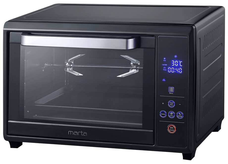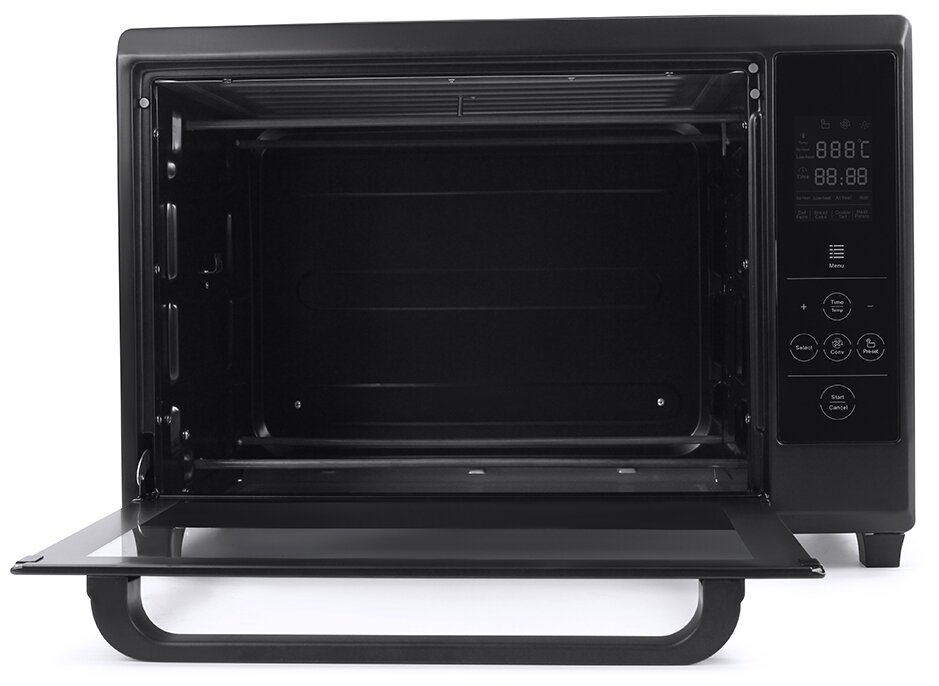 отложенный старт до 24 ч, сигнал об окончании приготовления, автоматическое выключение, антипригарное покрытие камеры, шашлычница, аэрофритюрница, держатель для вертела/шашлычницы; количество противней в комплекте: 1; длина сетевого шнура: 0.95 м