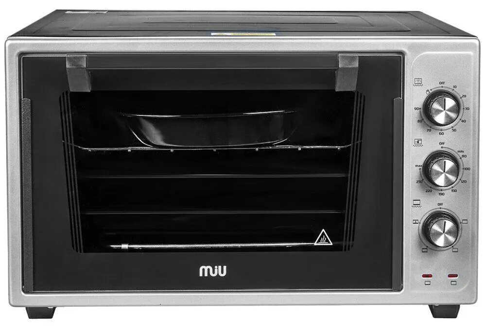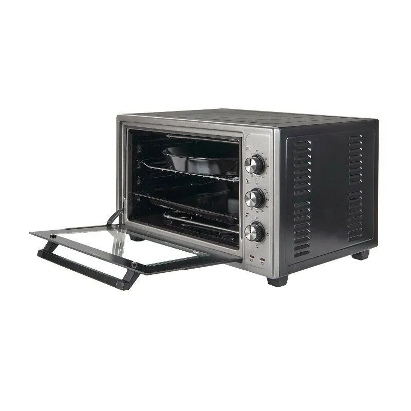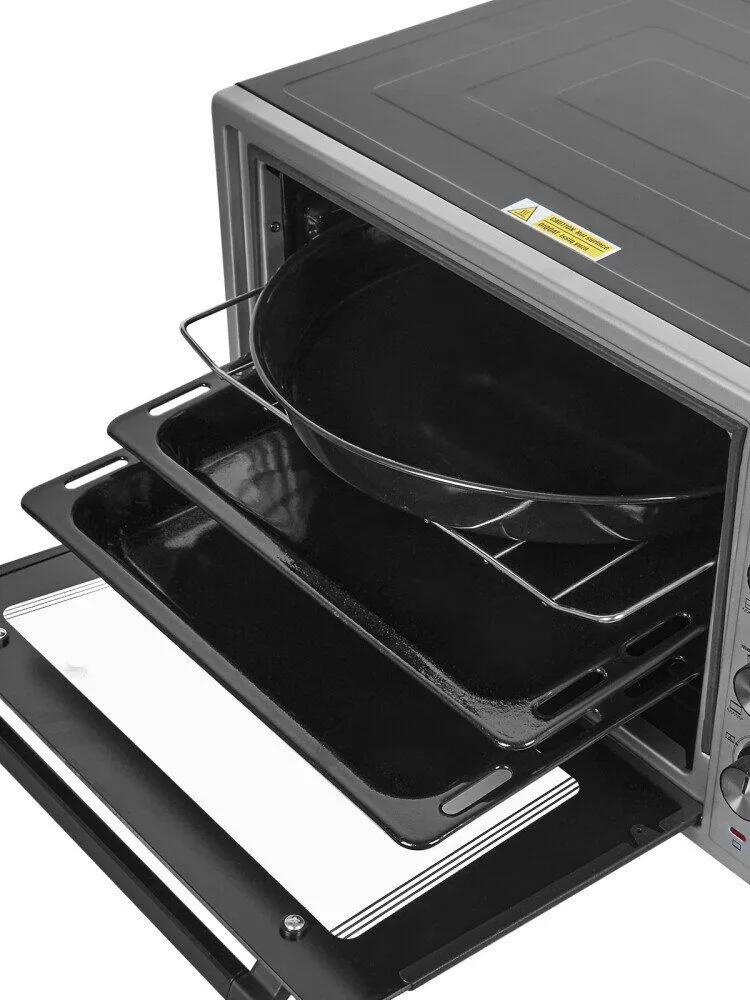 Описание Тип питания - электрический Объем камеры - 36 л Максимальная потребляемая мощность - 1432 Вт Максимальная температура - 300 С Управление - механическое Цвет - серый черный Количество режимов работы - 4 Режимы - верхний нагрев, нижний нагрев, верхний + нижний нагрев, конвекция Гриль - нет Конвекция - да Вертел - нет Особенности - таймер Комплектация - прямоугольный противень, глубокий круглый противень, решетка Размеры, мм - 430х540х310 Вес - 14.5 кг;