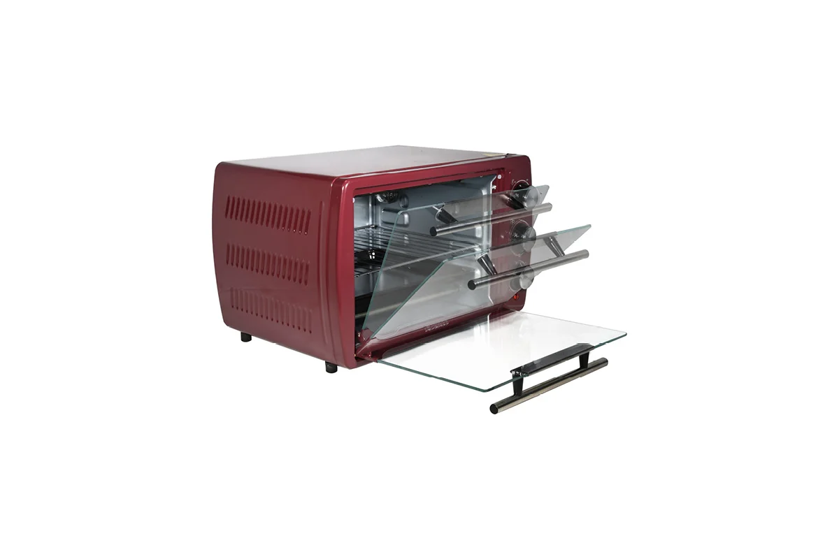 Мини-духовка оснащена четырьмя нагревательными элементами. Благодаря регулировке температуры от 100 до 250 градусов и трем режимам работы можно приготовить любое блюдо: от аппетитных куриных ножек с хрустящей корочкой до вкусного ароматного пирога к чаю.