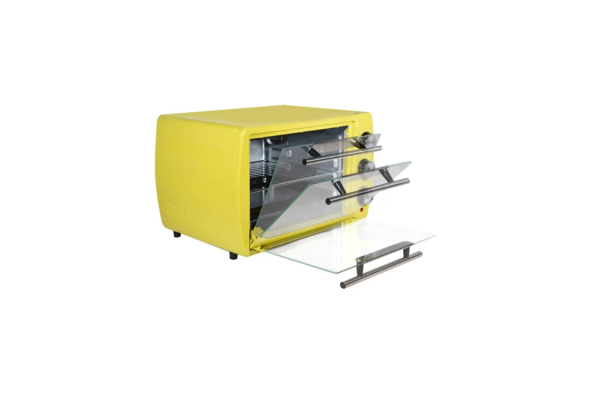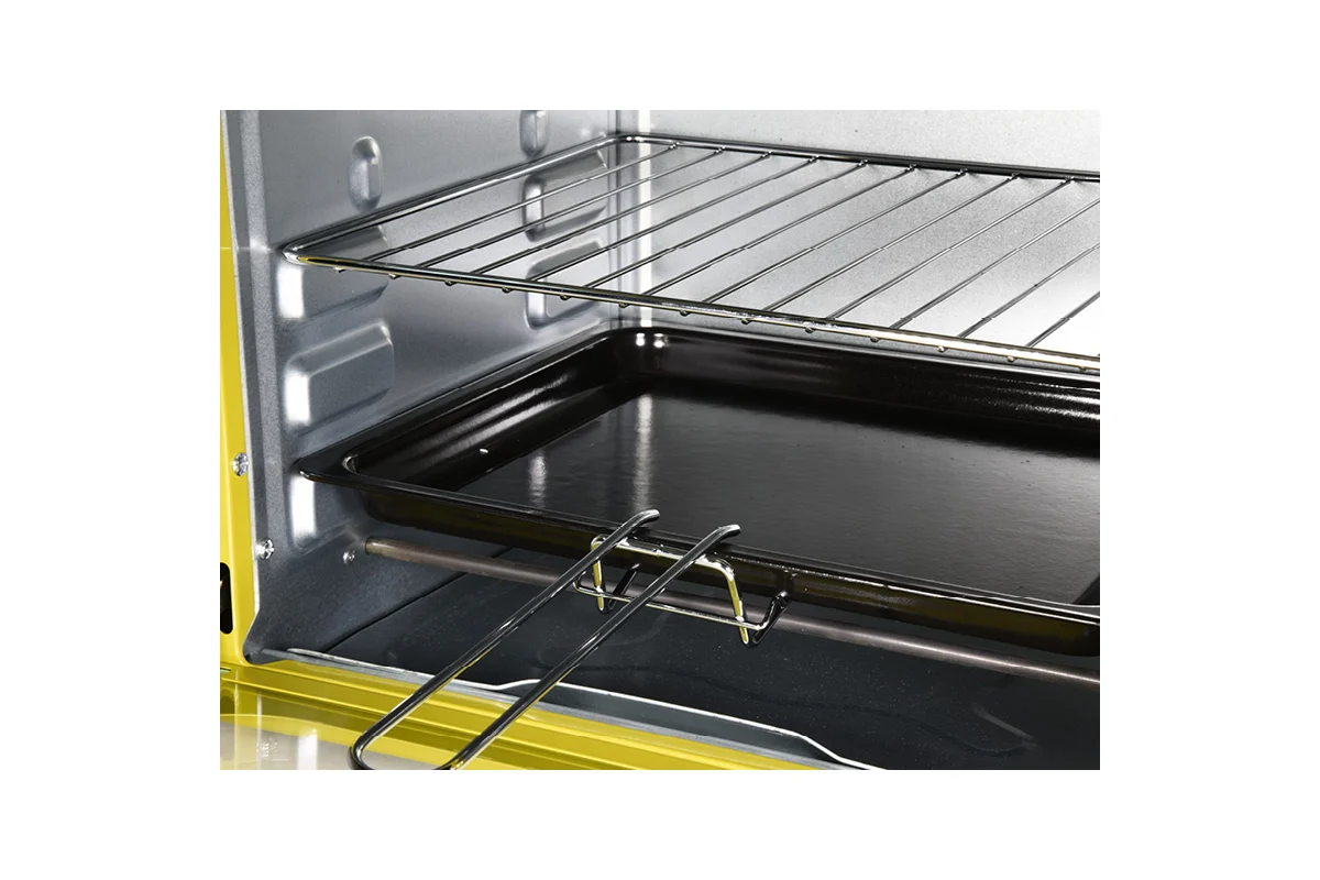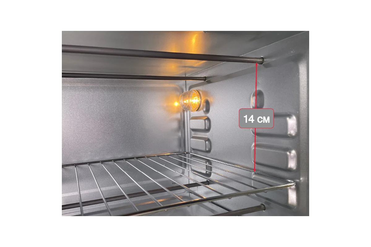 Мини-духовка оснащена четырьмя нагревательными элементами. Благодаря регулировке температуры от 100 до 250 градусов и трем режимам работы можно приготовить любое блюдо: от аппетитных куриных ножек с хрустящей корочкой до вкусного ароматного пирога к чаю.