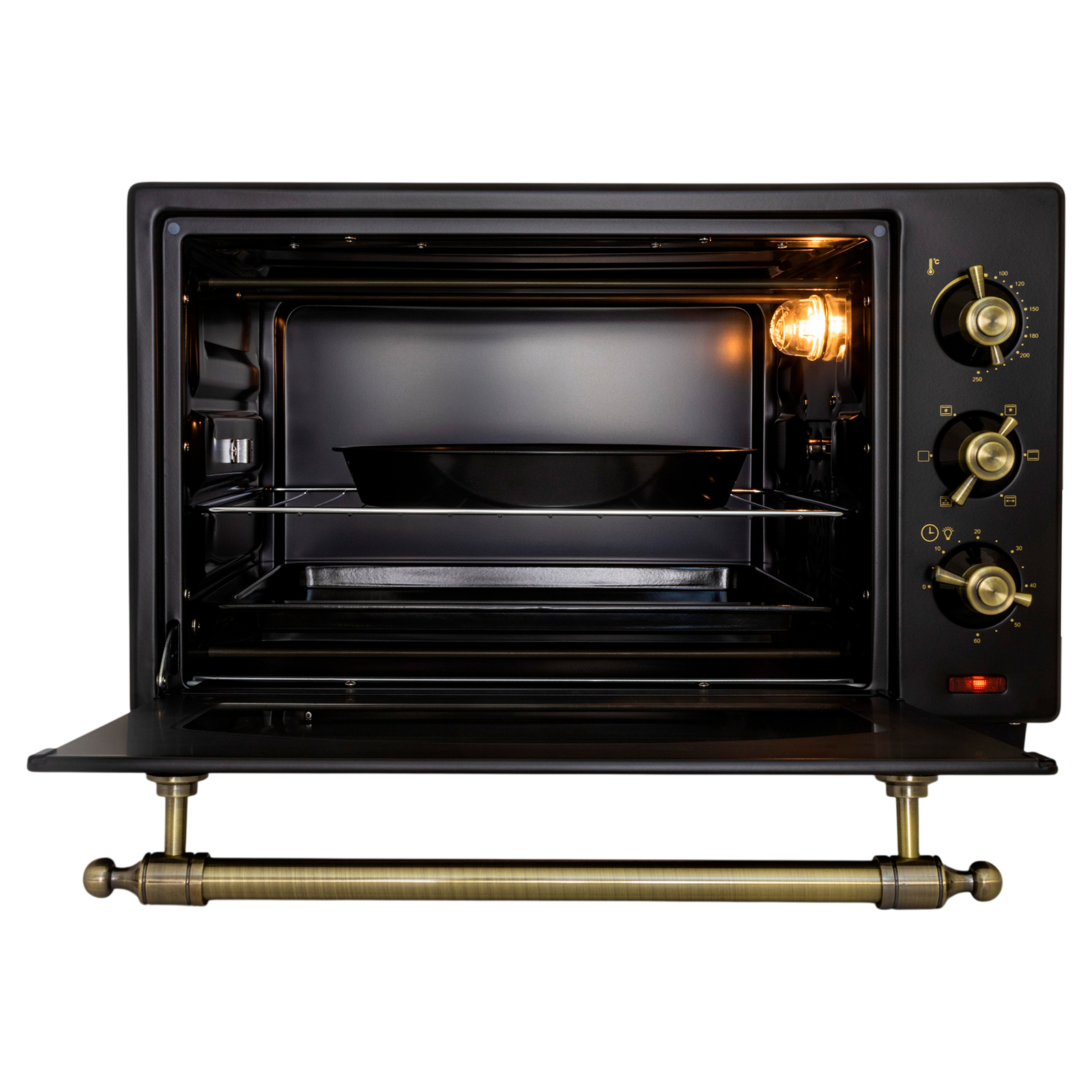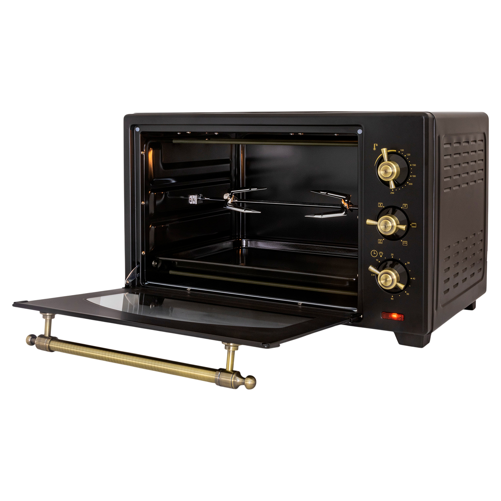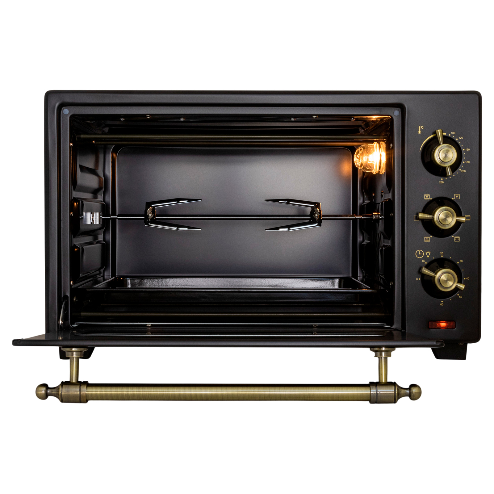 Комплектация: электропечь, решетка, противень для запекания, ухват для поддона, вертел, держатель для вертела, поддон для крошек, форма для пиццы,инструкция на русском языке