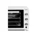 Дизайн настольной электродуховки выполнен преимущественно в белом цвете с дополнением черного и металлика.