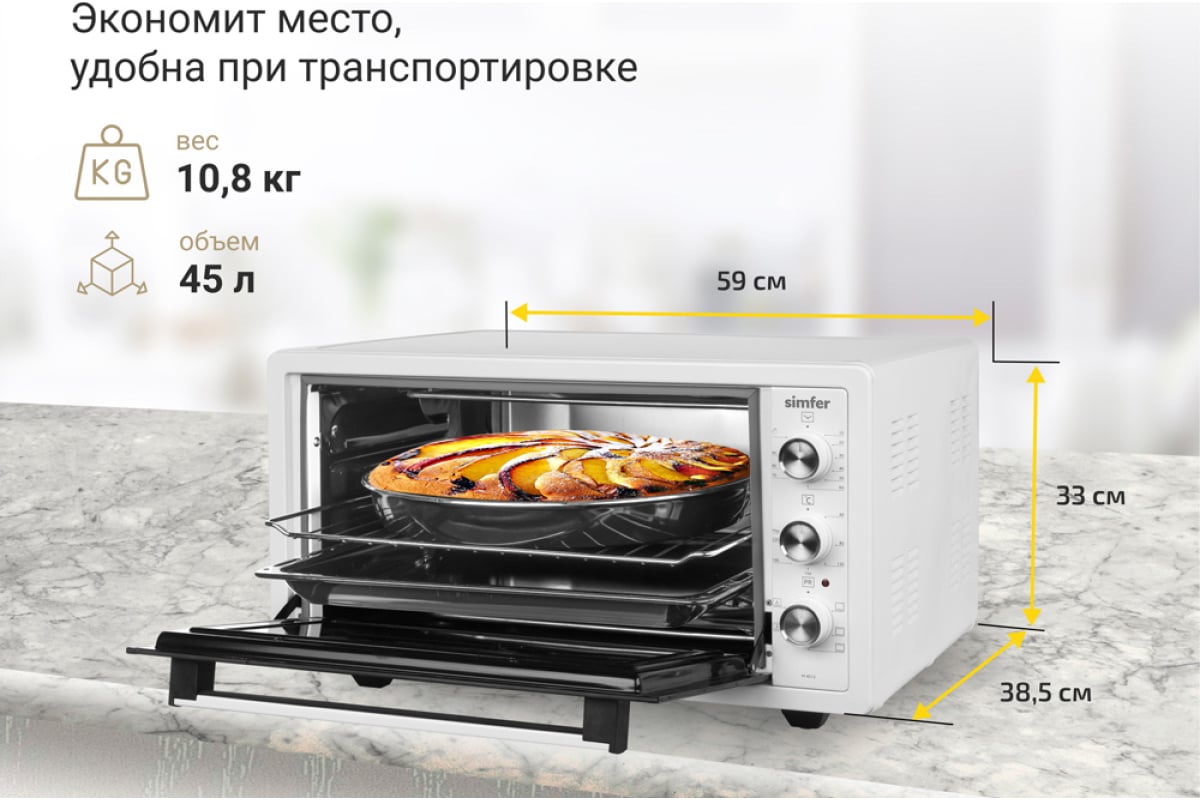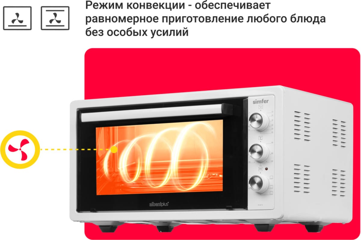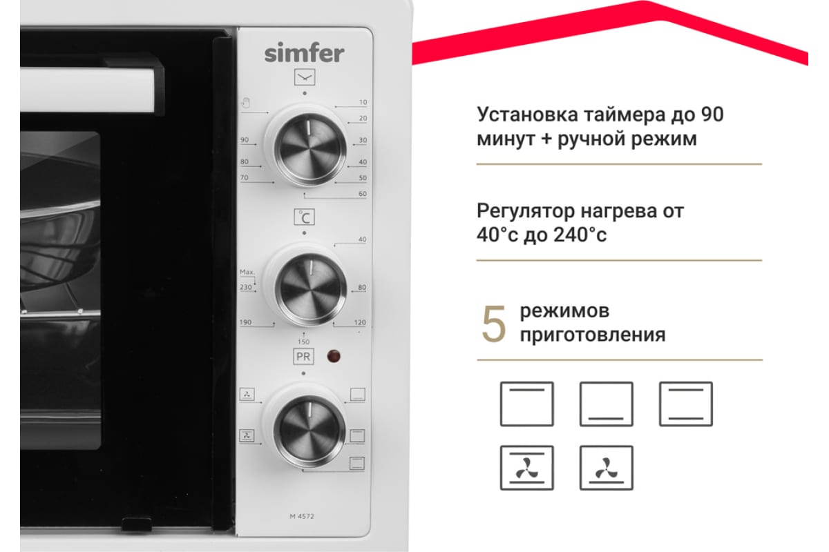 5 (верхний нагрев / верхний + нижний нагрев / нижний нагрев / верхний + нижний нагрев + конвекция / нижний нагрев + конвекция / режим йогурт)