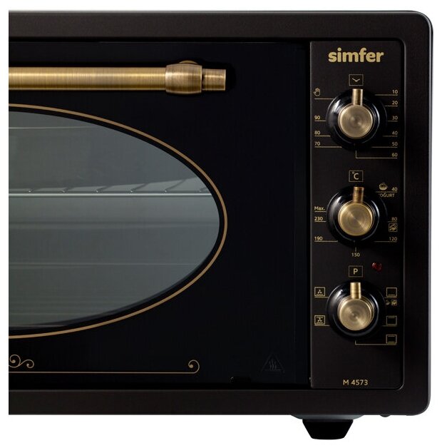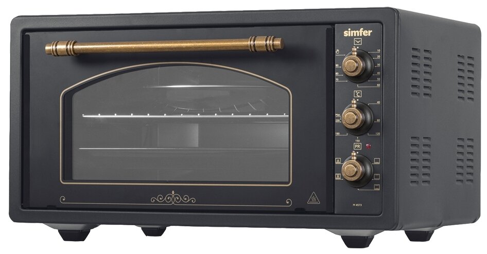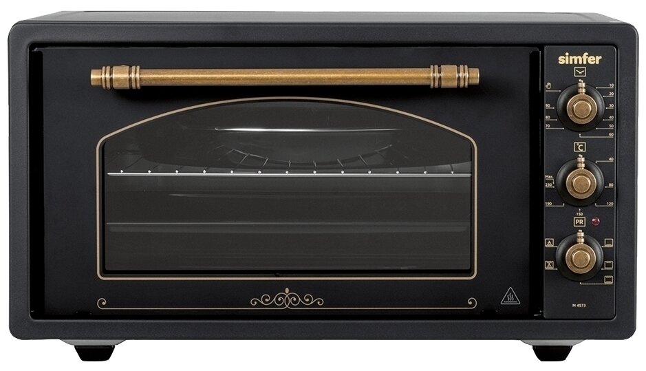 5 режимов работы; при первом запуске рекомендуется протопить печь 45 минут при температуре 200 °C для прогорания заводской смазки; ручка с защитой от нагревания; автоотключение; электрический термостат; подсветка; звуковой сигнал отключения;; количество противней в комплекте: 2