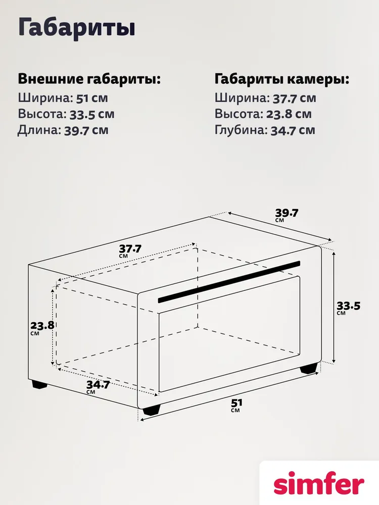 Верхний + нижний нагрев, Верхний нагрев, Нижний нагрев