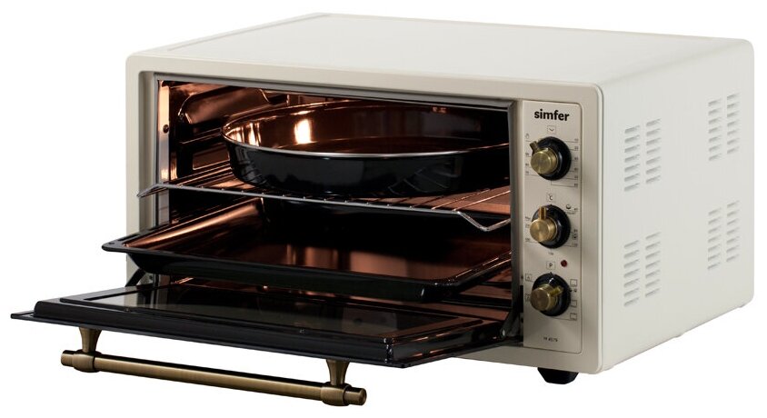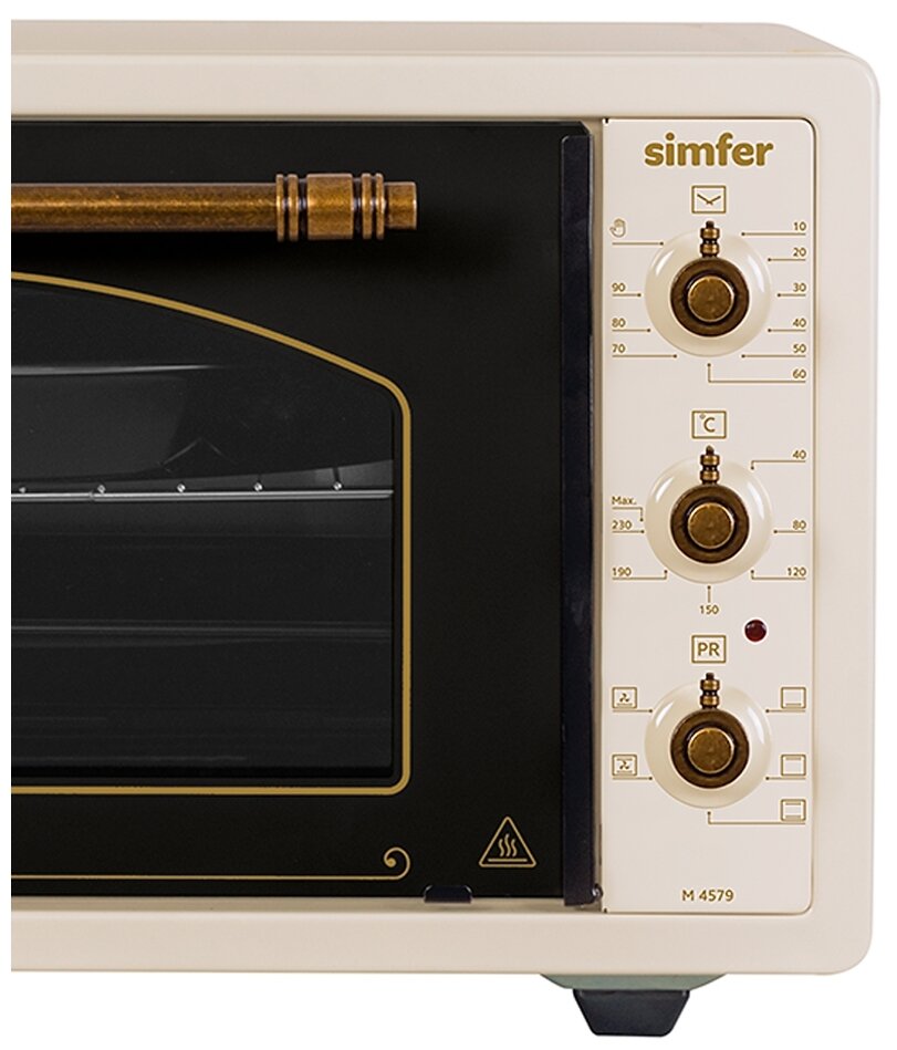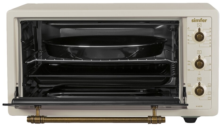 5 режимов работы; режим йогурт; ручка с защитой от нагревания; автоотключение; двойное стекло дверцы; при первом запуске рекомендуется протопить печь 45 минут при температуре 200 °C для прогорания заводской смазки; количество противней в комплекте: 2