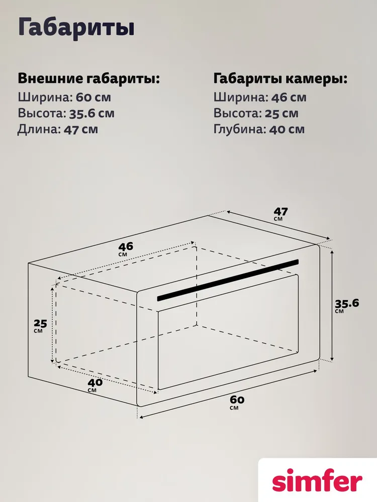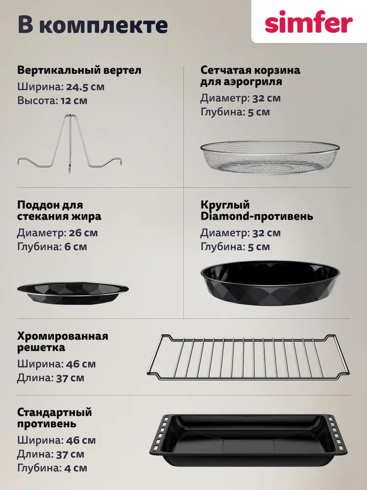 Режимы работы: Верхний + нижний нагрев, Верхний нагрев, Конвекция, Нижний нагрев