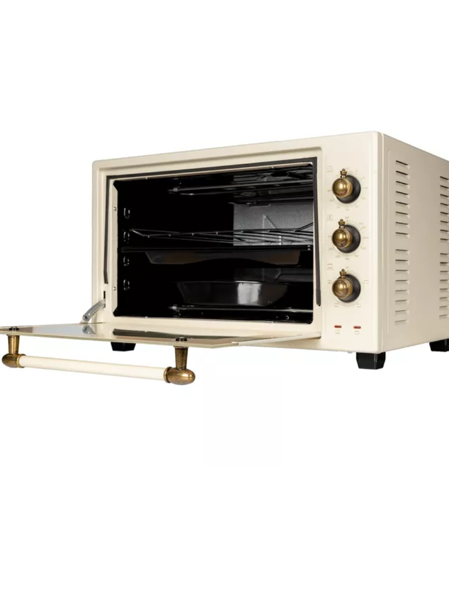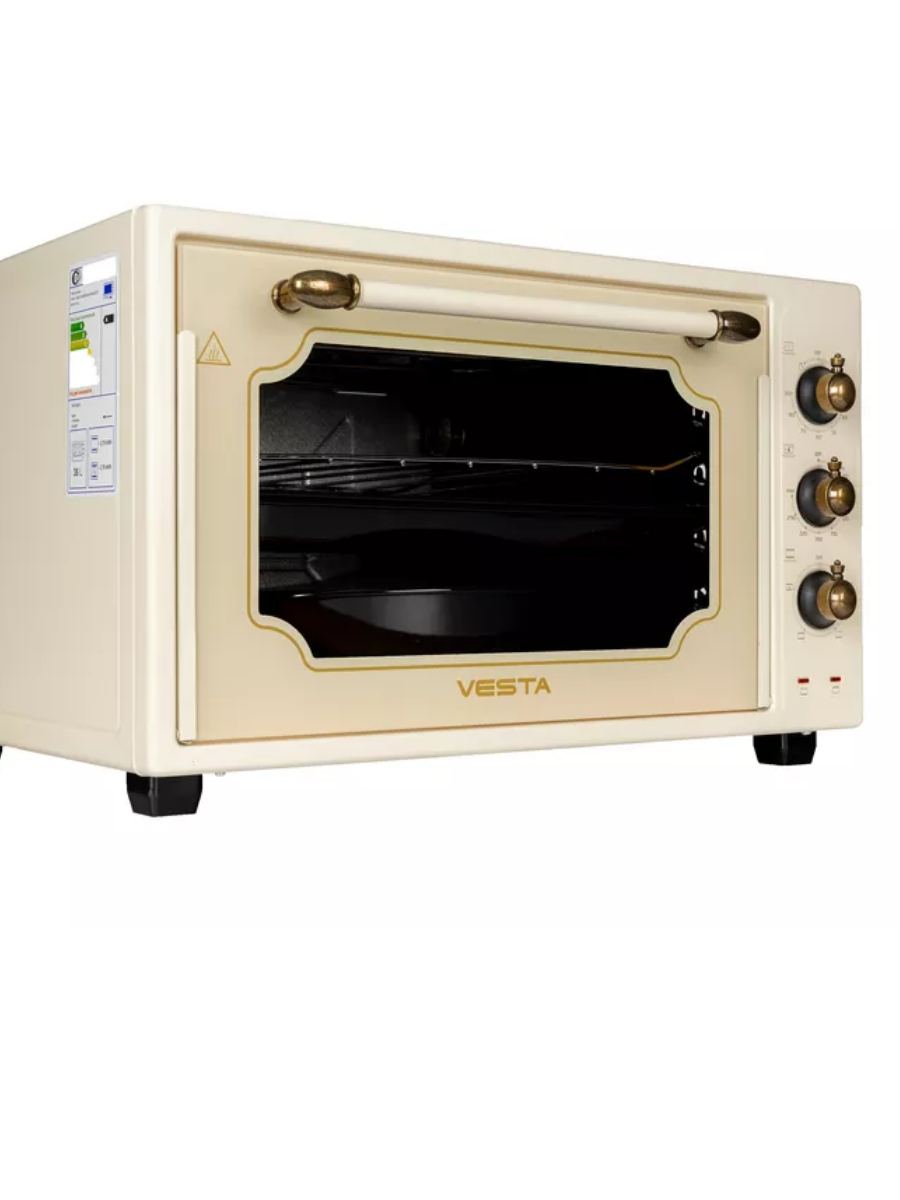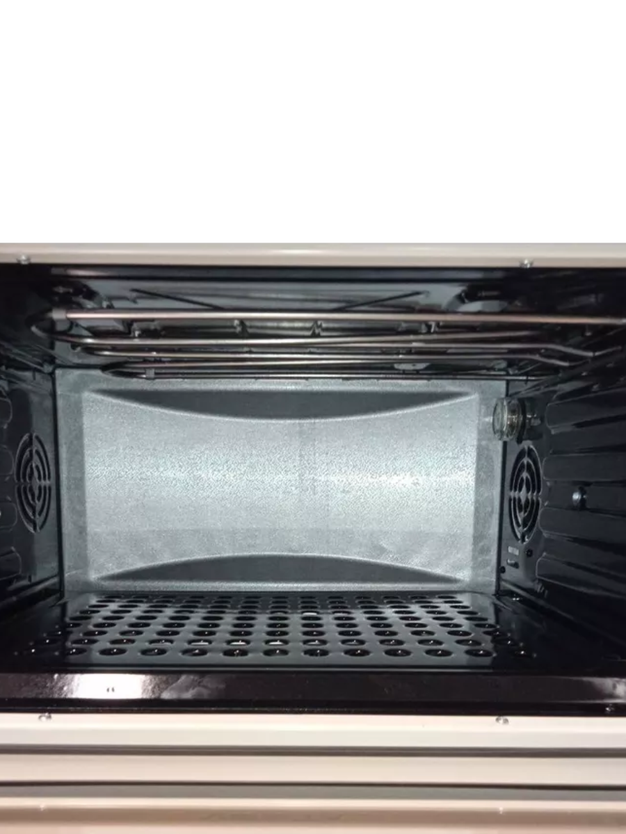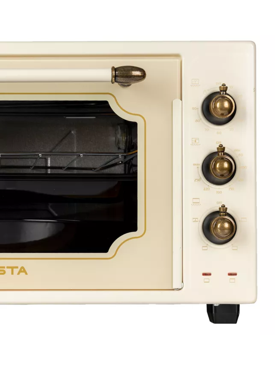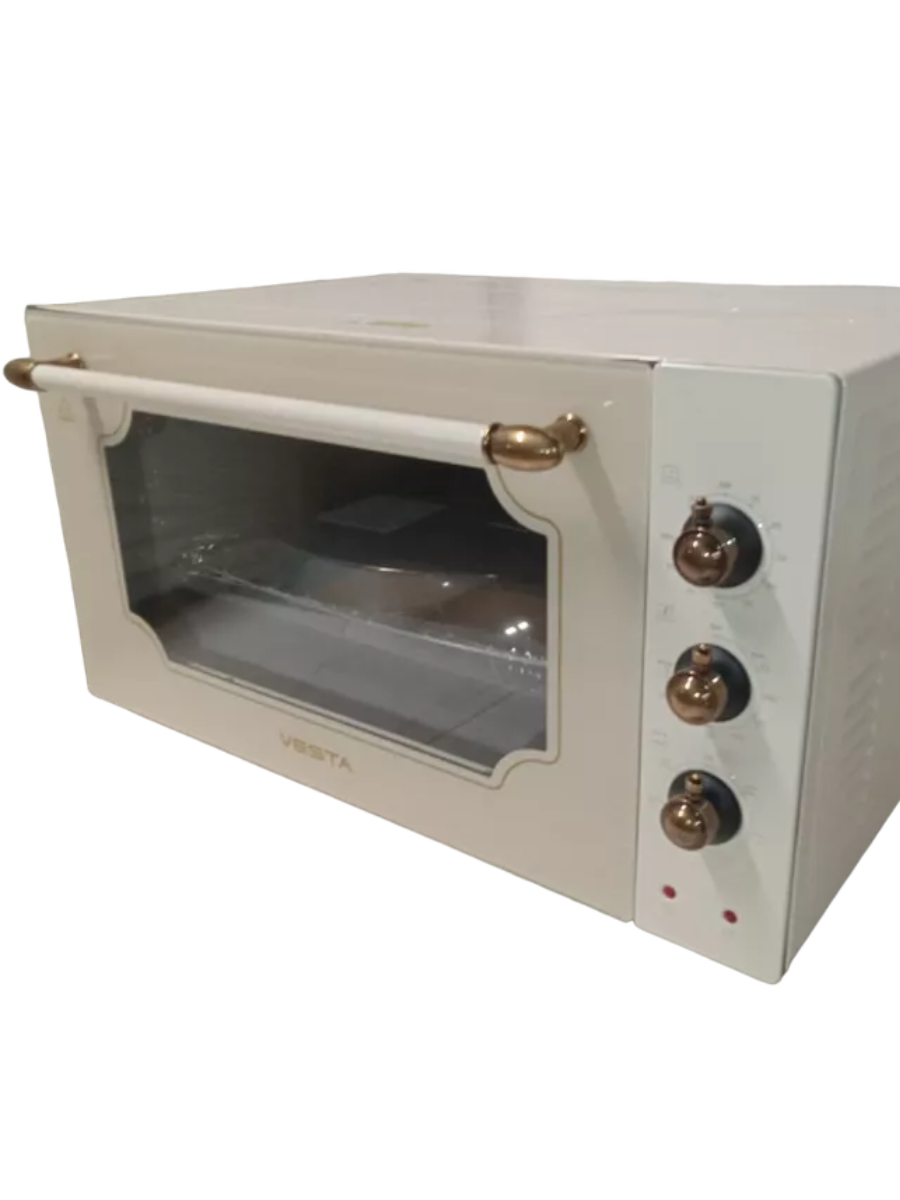 Электрическая духовка объёмом 42 литра с конвекцией и грилем. Подсветка камеры духовки, двойное стекло дверцы. Закрытый нижний ТЭН. Механический таймер. Шесть режимов работы. Комплект: 3 противня, решётка, вертел.