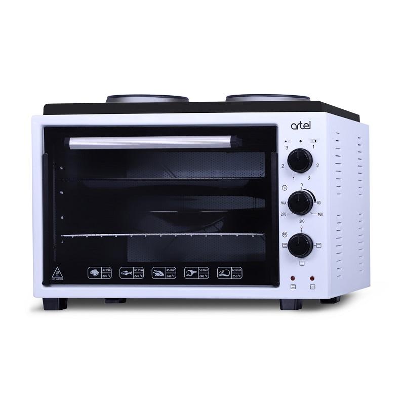 Общие характеристики Тип мини-печь Объём камеры 36 л Дополнительные функции варочная поверхность Режимы верхний нагрев, нижний нагрев, верхний+нижний нагрев Особенности механическое управление Термостат есть Комплектация решётка, противень, круглый противень Количество протвиней в комплекте 2 Таймер механический Материал корпуса металл Дизайн традиционный Технические характеристики Максимальная температура нагрева 300 °C Количество конфорок 2 Номинальная мощность 1400 Вт Максимальное время установки таймера 90 мин.